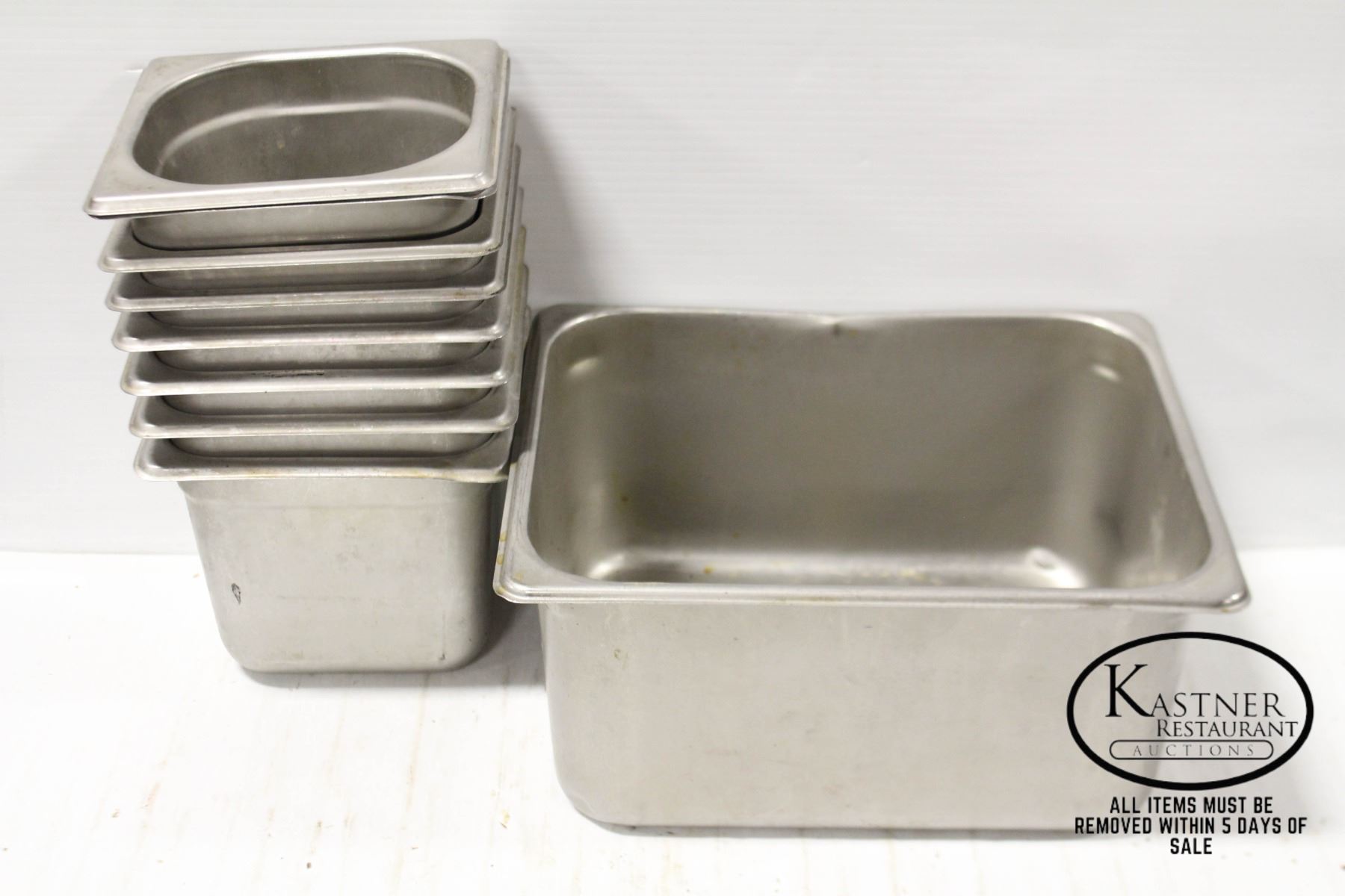 LOT OF 9 1/6 SIZE S/S INSERTS, 6" DEEP &