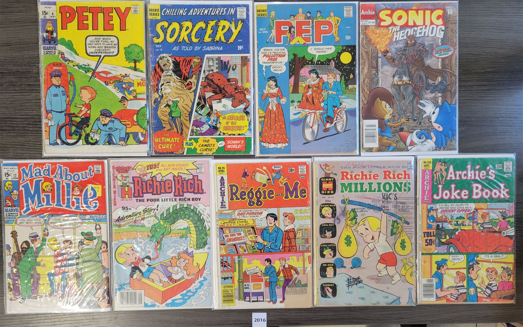 LOT OF 9 - ARCHIE ADVENTURES COMICS - INCL PEP, SORCERY, SONIC THE HEDGEHOG, ARCHIE, ETC.