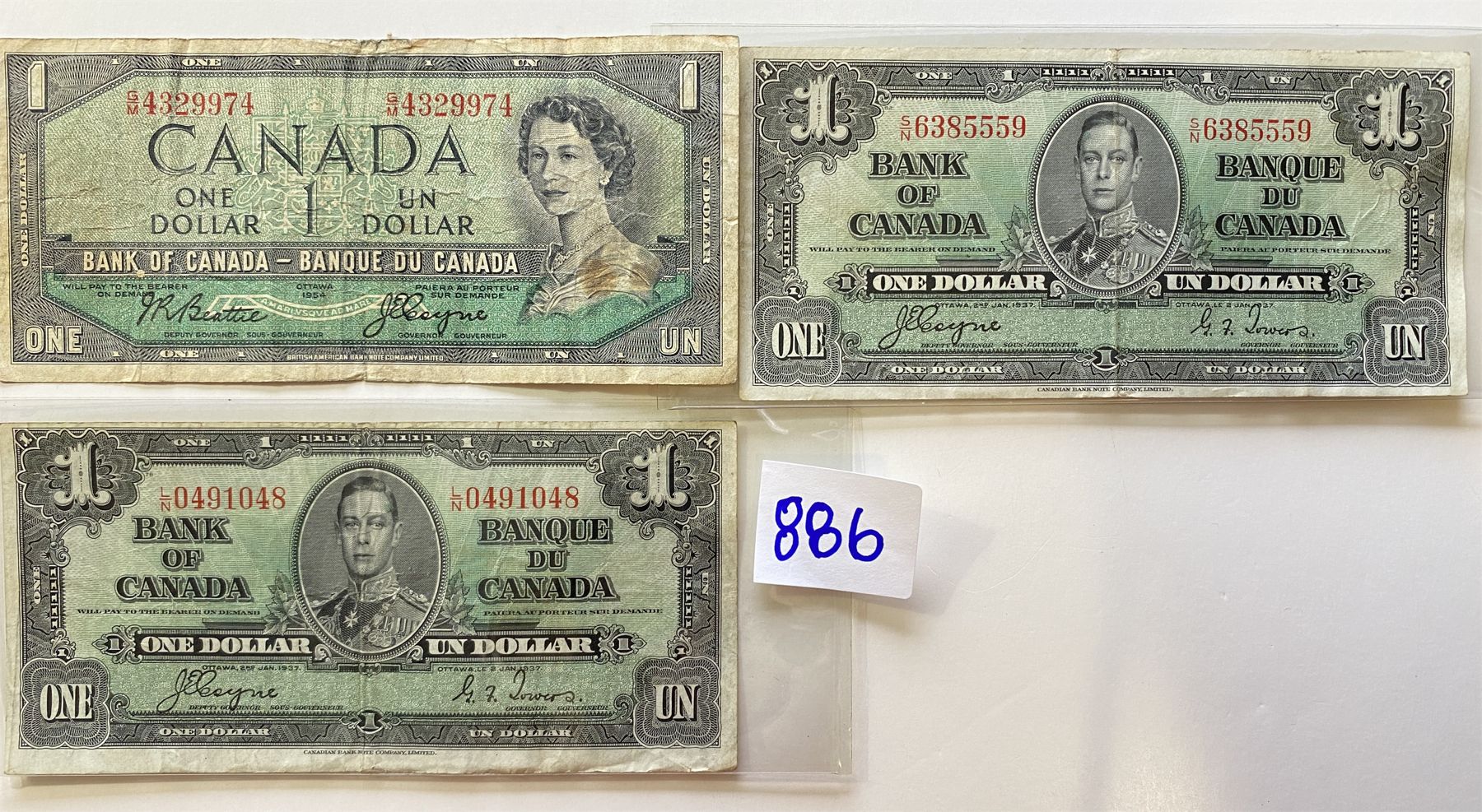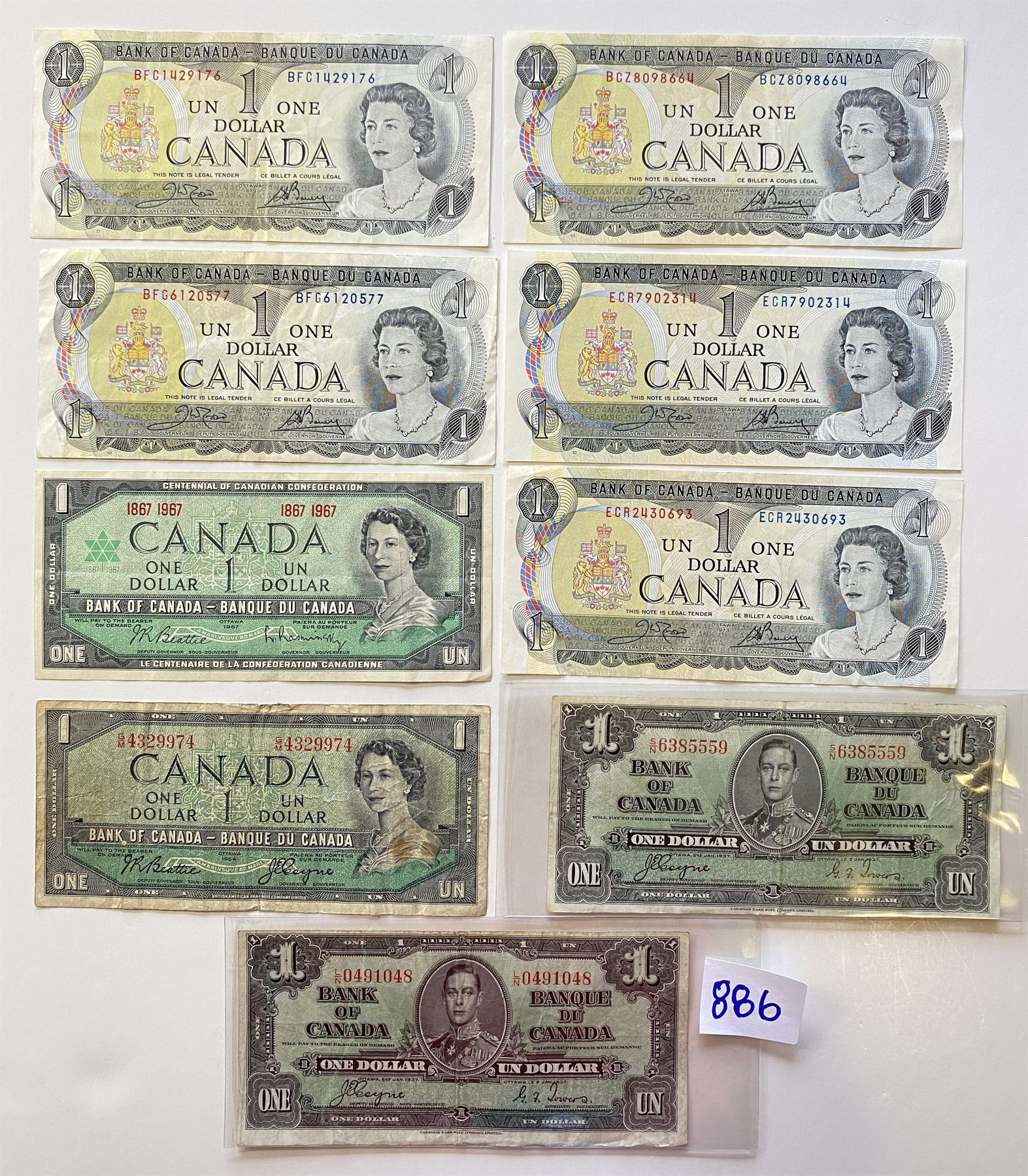 LOT OF 9 - CANADIAN DOLLAR BILLS - 1937, 1954, 1967, 1973