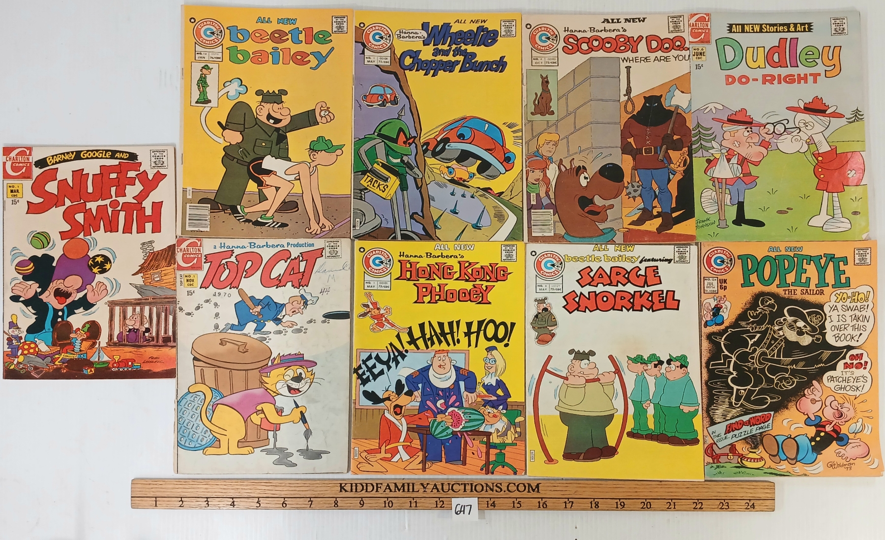 LOT OF 9 - CHARLTON COMICS - POPEYE, SCOOBY-DOO, TOP CAT, SARGE SNORKEL, DUDLEY DO-IT RIGHT, ETC