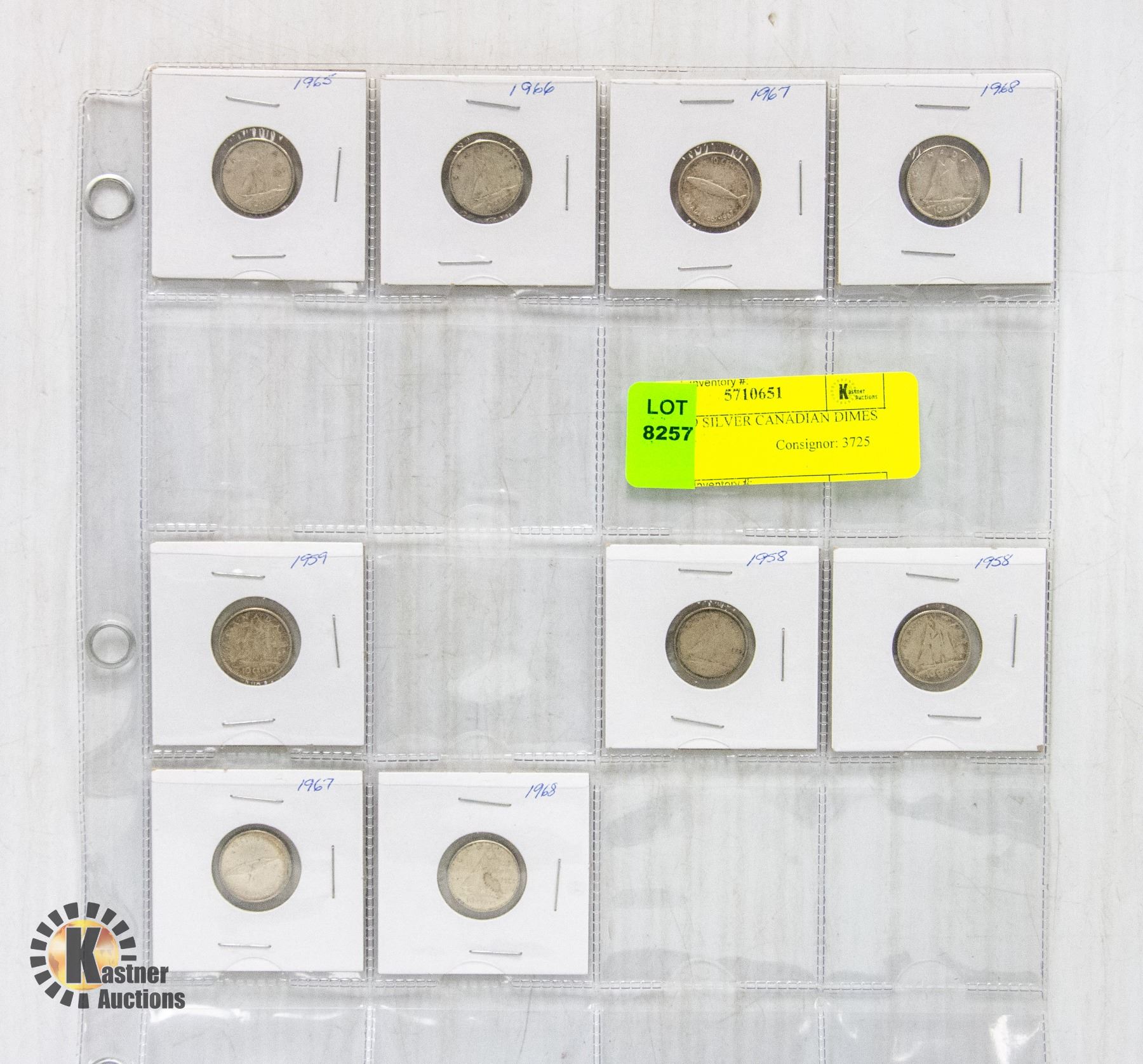 LOT OF 9 SILVER CANADIAN DIMES