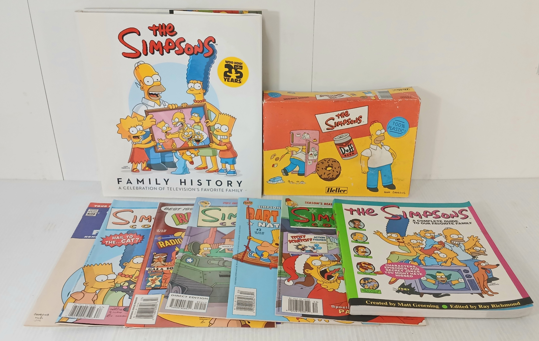 LOT OF 9 - THE SIMPSON'S HELLER MODEL KIT, COMICS & GUIDE BOOKS - INCL  THE SIMPSONS FAMILY HISTORY