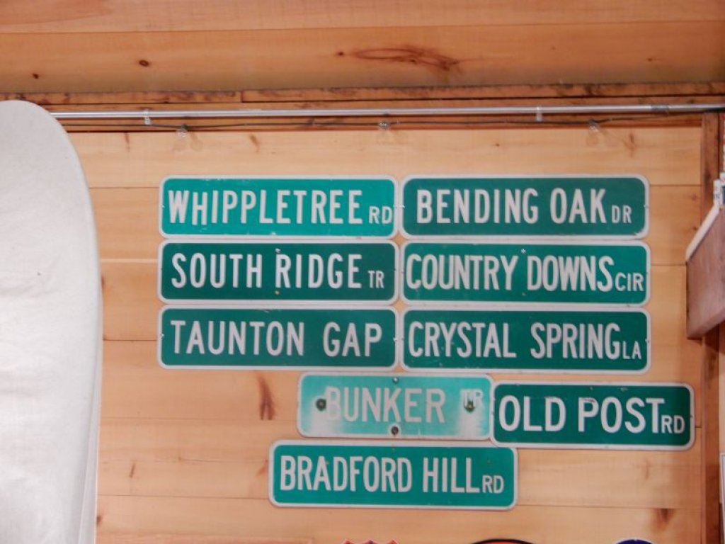 LOT OF 9 VARIOUS ALUMINUM STREET SIGNS LOCATION: UPPER LEFT