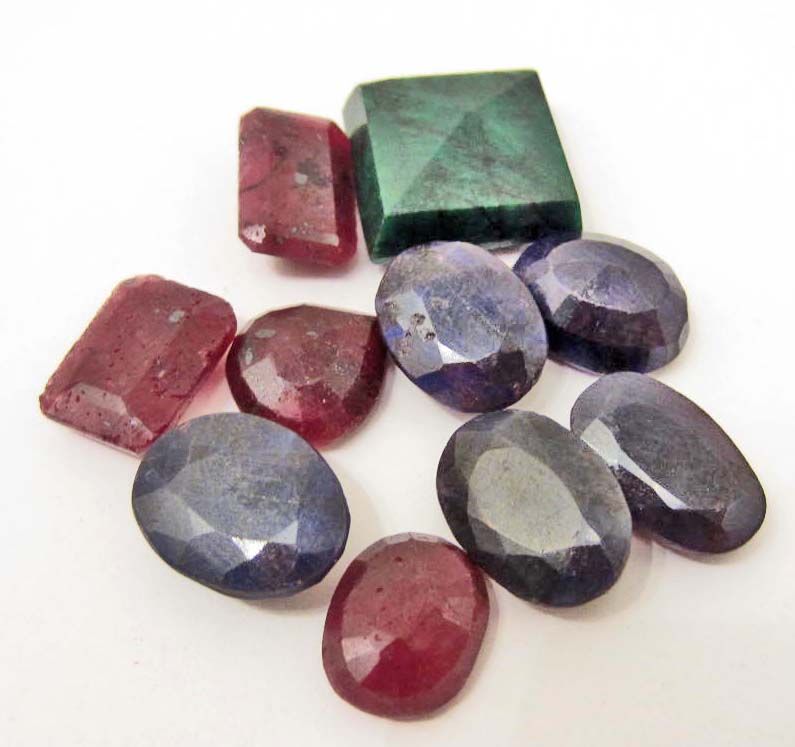 LOT OF 96.1 CTS OF EMERALDS, RUBIES & SAPPHIRES MIX - 10 PCS