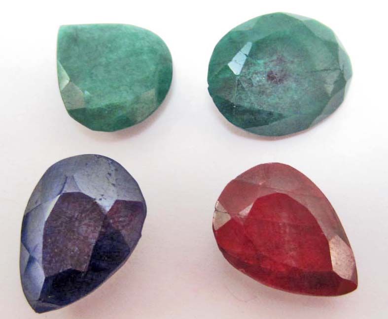 Including: 1 Red Ruby, 1 Blue Sapphire, 2 Green Emeralds
