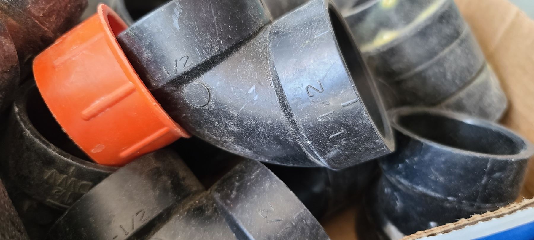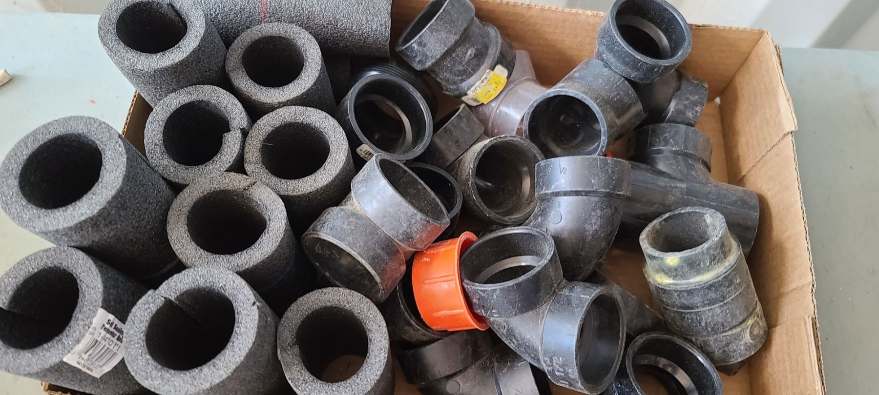 LOT OF ABS 1 1/2" PLUMBING FITTINGS AND HOSE INSULATION