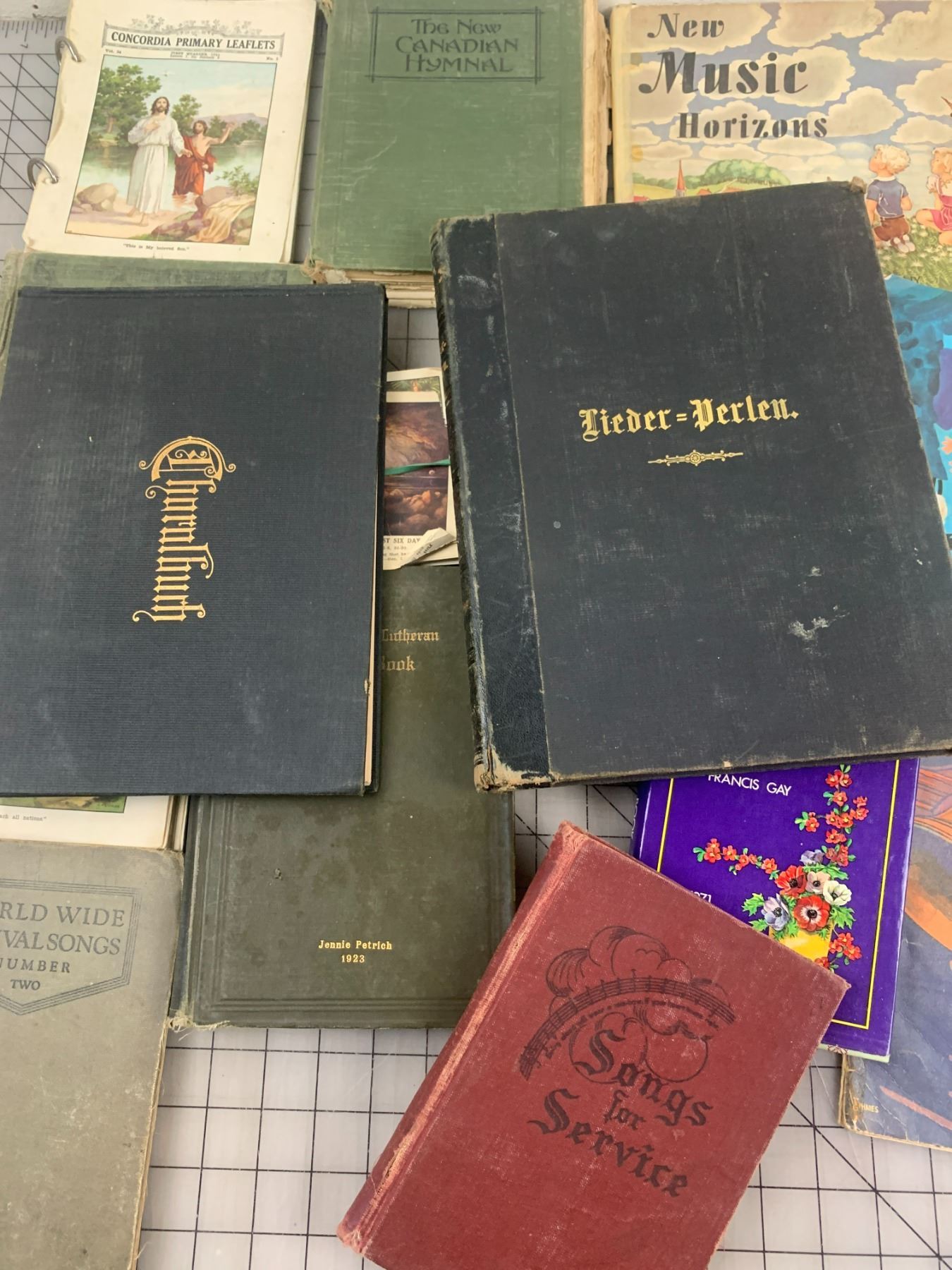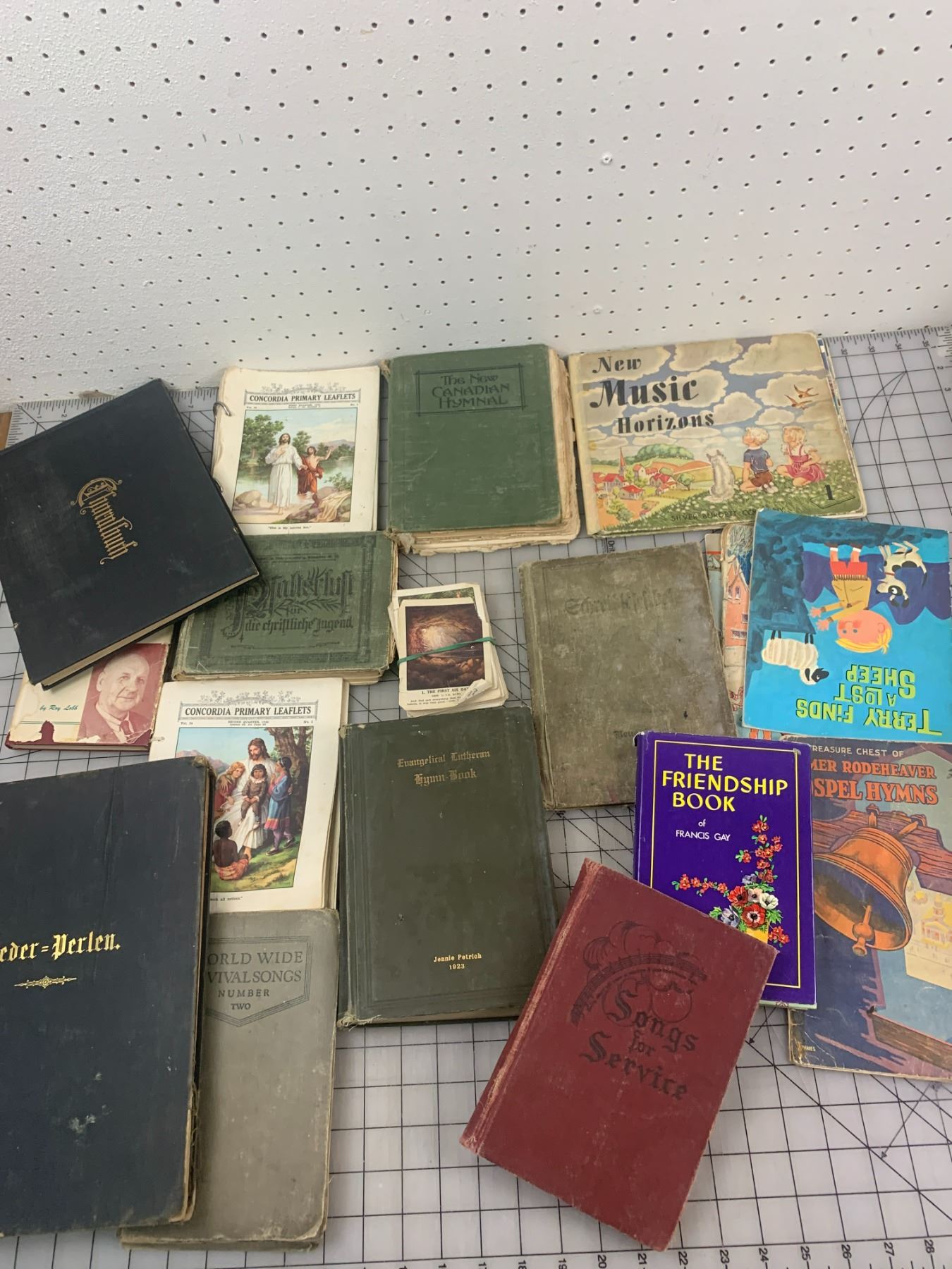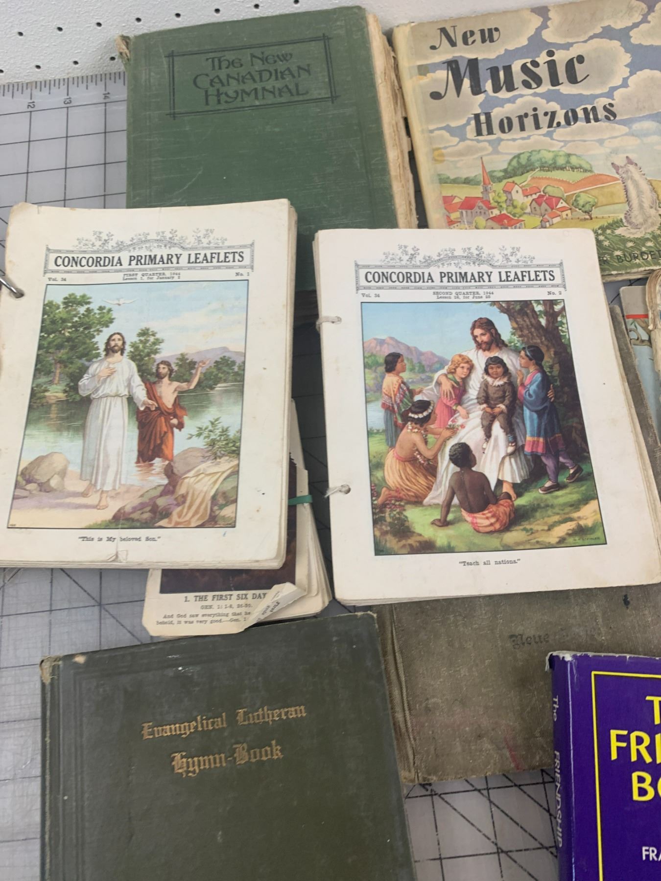 LOT OF ANTIQUE AND VINTAGE RELIGIOUS BOOKS AND MUAIC
