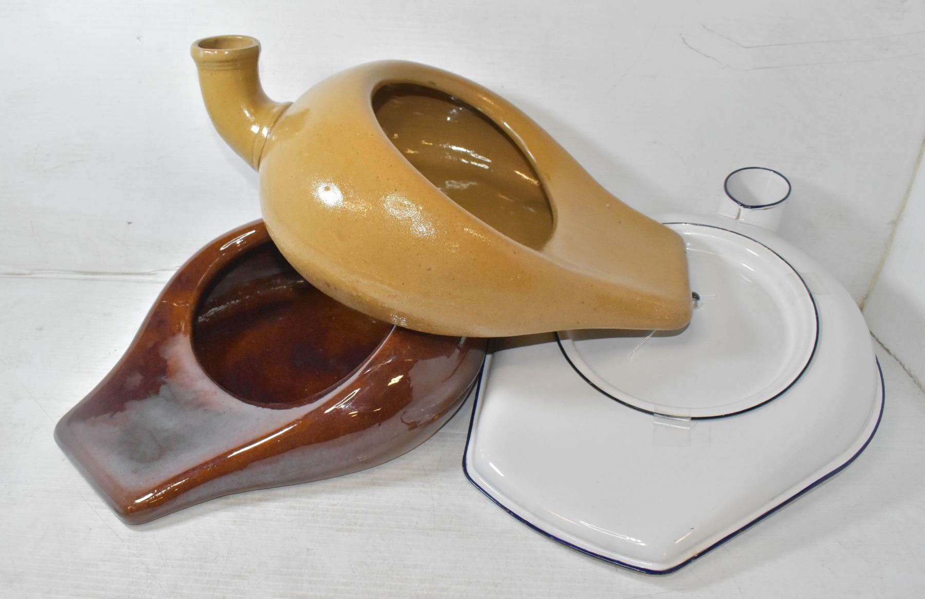 LOT OF ANTIQUE BEDPANS OF DIFFEREENT MATERIALS