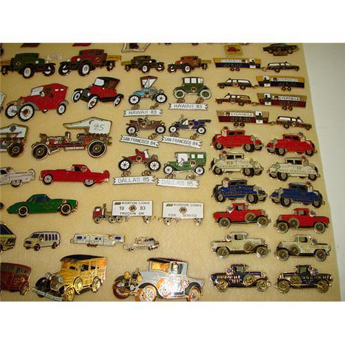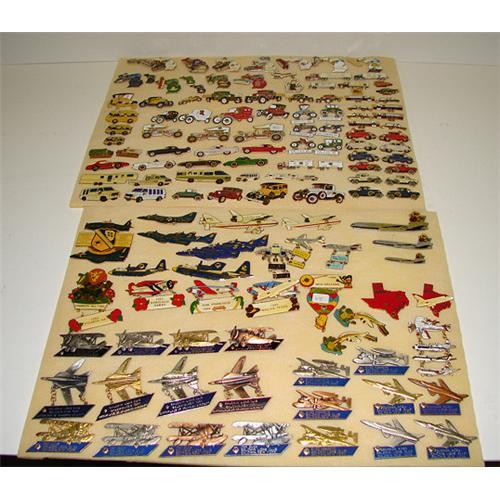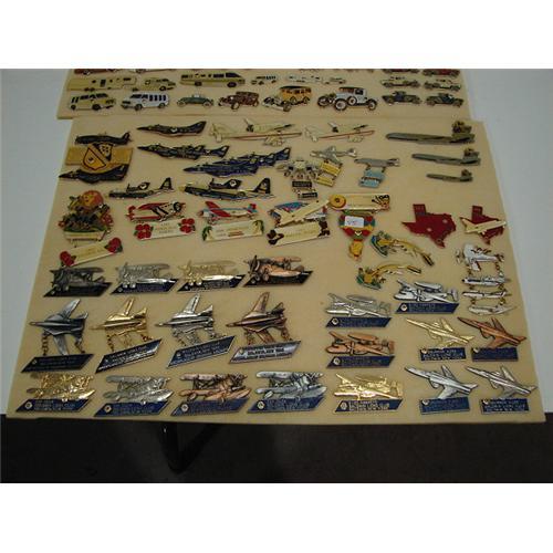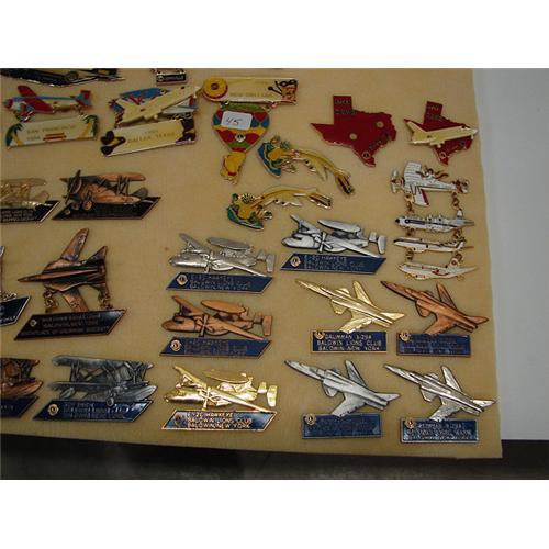 LOT OF APPROX. 128 LIONS CLUB PINS. Consists of El Centro, California U.S. Navy Blue Angels pins, NASA Space Shuttle pins, Florida plane pins, Chambers Hill aviation pins, Texas space shuttle pins, Baldwin, New York aviation pins, Michigan automobile pins, Wisconsin automobile pins, California automobile pins, New Jersey automobile pins, Millersburg, IN van pins, Birdsboro District 14-P automobile pins, and Stowe, PA automobile pins. Pins are from the 1970s and 1980s.