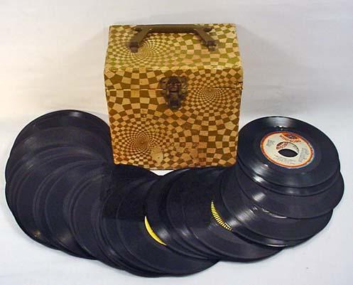 LOT OF APPROX. 34 VINTAGE 45 RPM RECORDS IN RECORD CASE - Incl. Andy Gibb, Patsy Cline, Patti Page, The Rolling Stones, more.