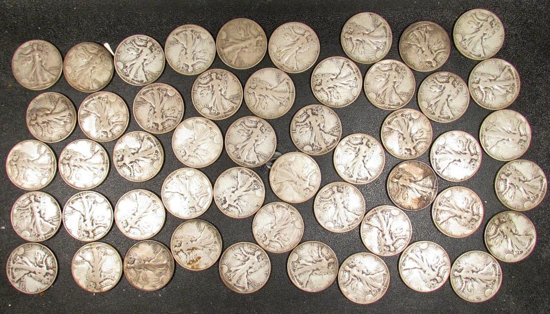 LOT OF APPROX. 50 WALKING LIBERTY HALF DOLLARS - VARIOUS DATES AND GRADES