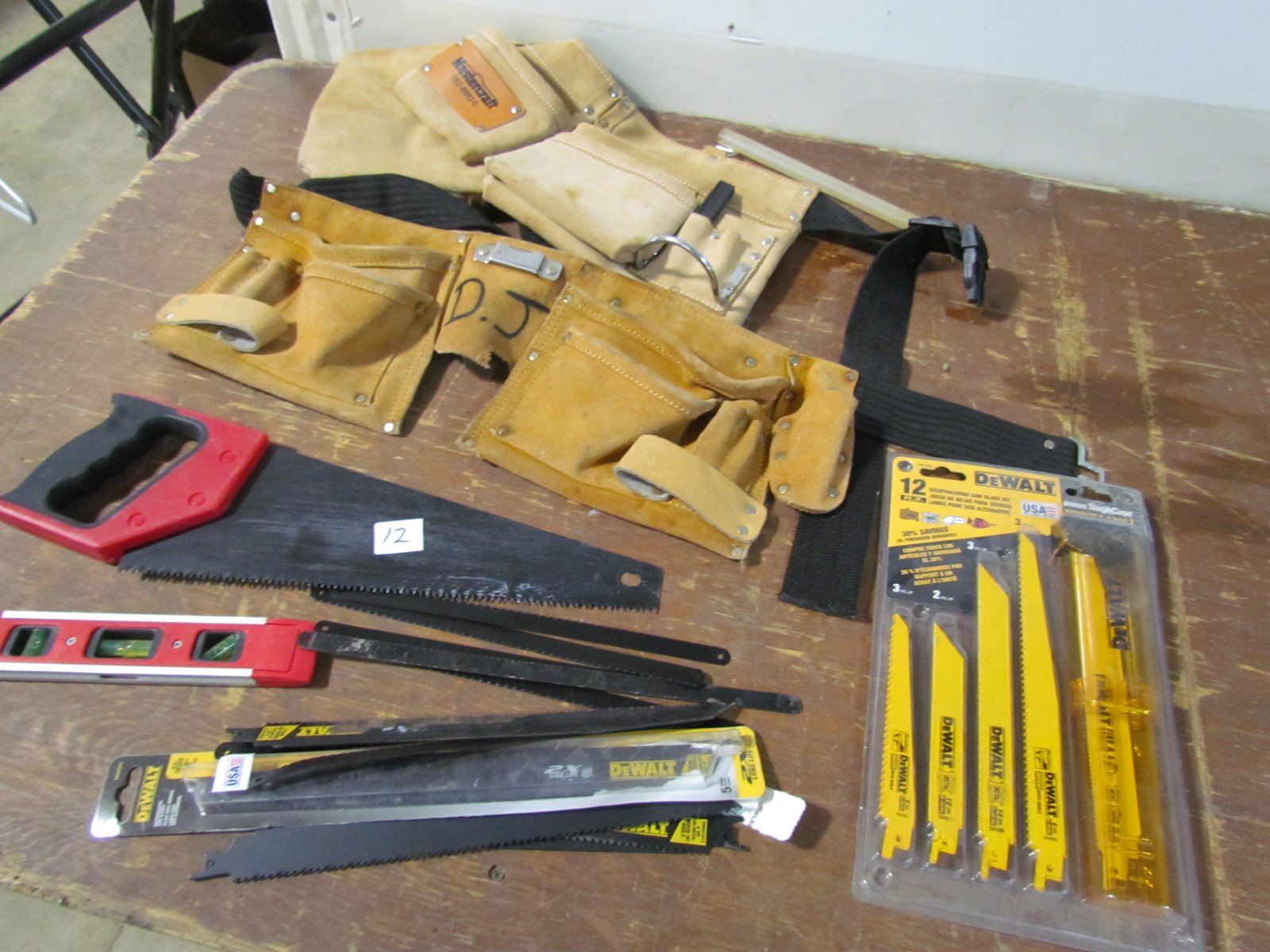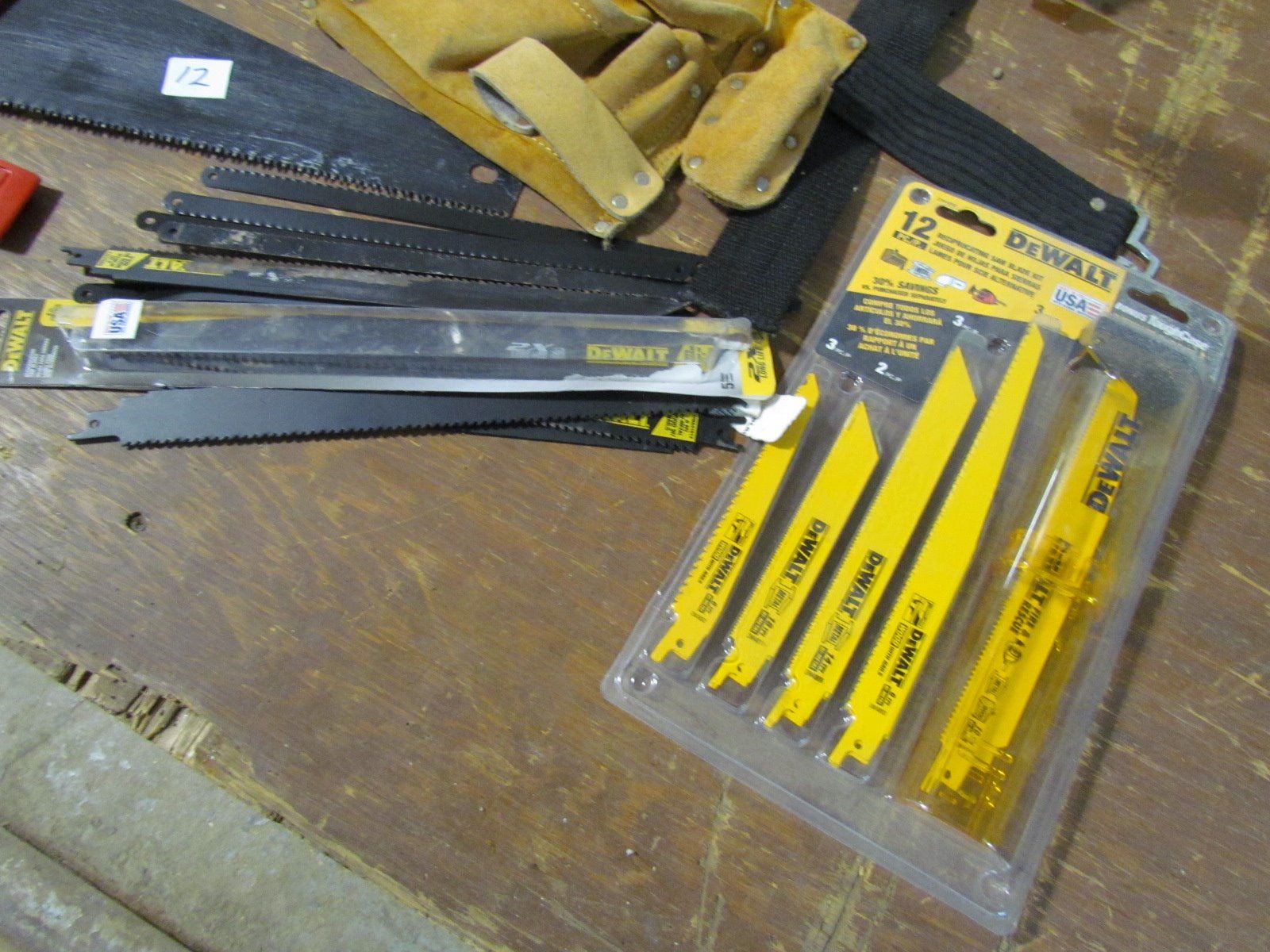 LOT OF APRONS, SAWZ ALL BLADES, HACKSAW BLADES