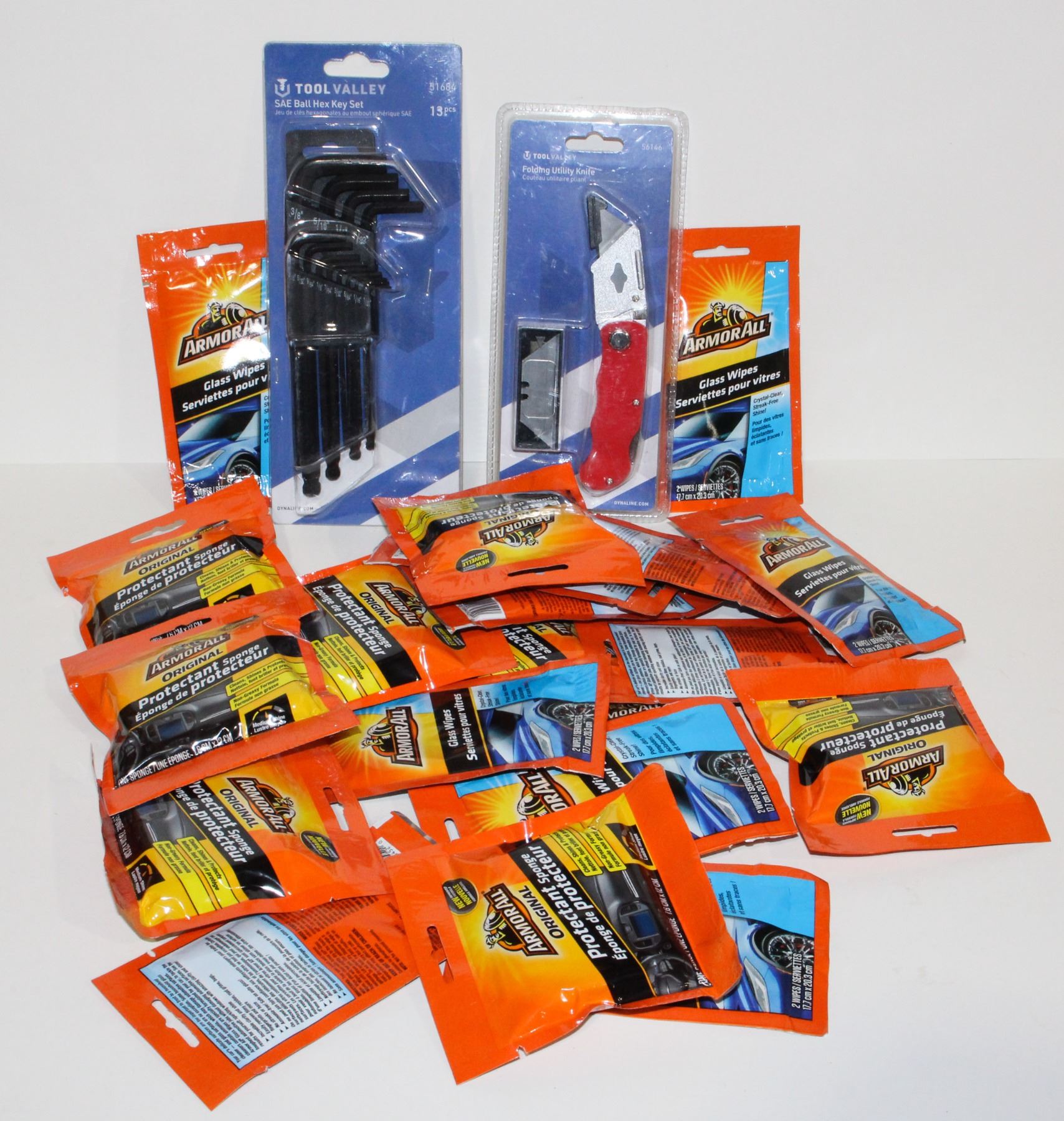 LOT OF ARMOR ALL CLEANING WIPES, SAE BALL HEX KEY