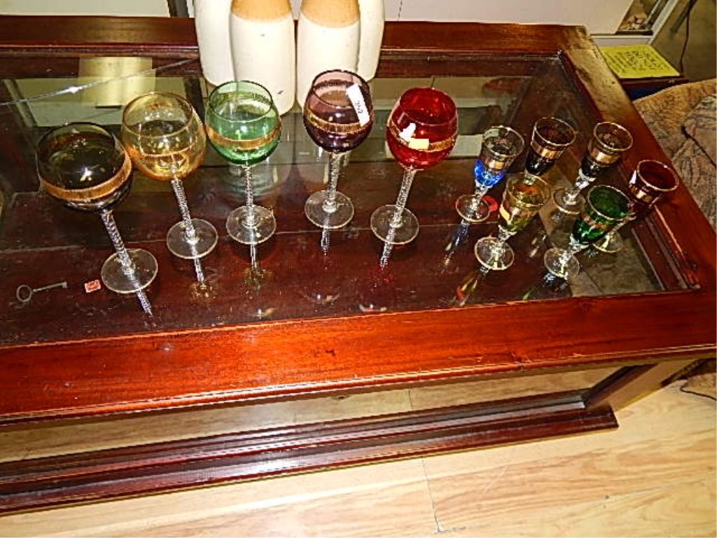LOT OF ASSORDED COLORED WINE GLASSES & OTHER