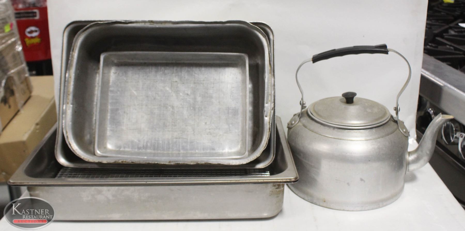 3 ALUMINIUM DOUBLE ROASTING PAN AND ALUMINIUM KETTLE WITH LID