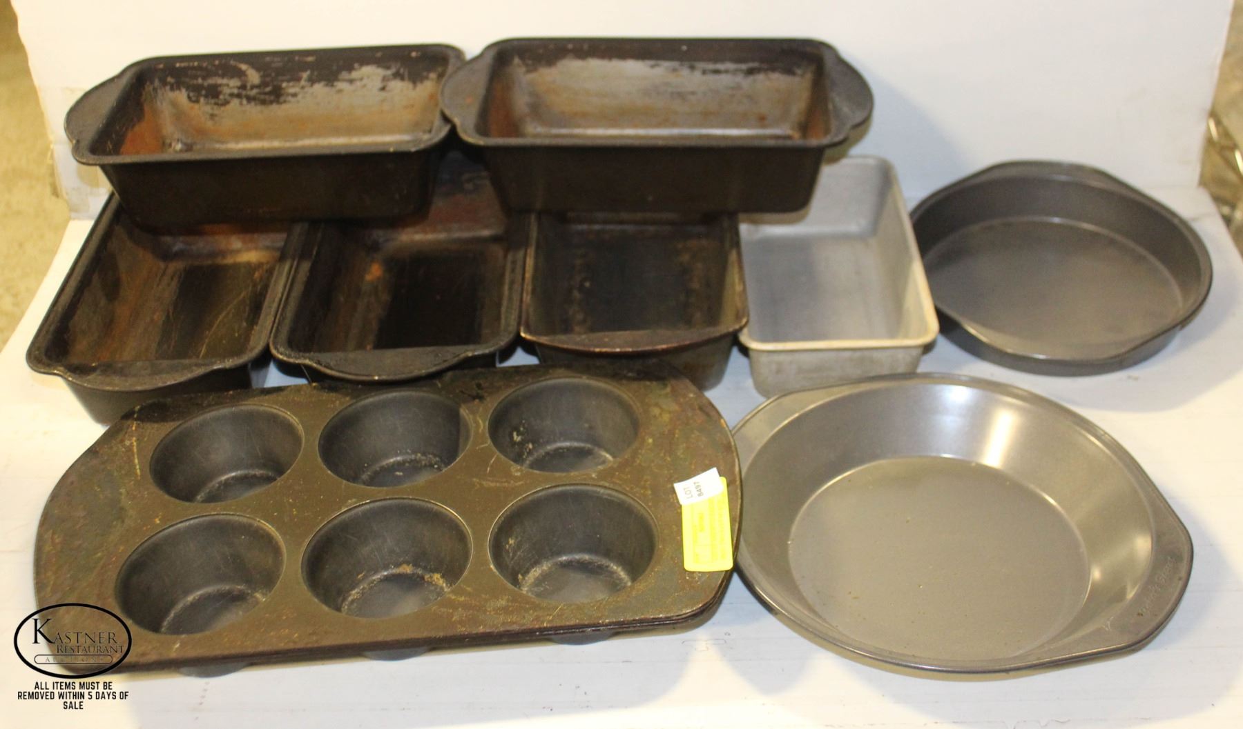 PANS, SIX 5" X 9" LOAF PANS, ONE 8" ROUND CAKE PAN & ONE 9" ROUND CAKE PAN**ALL ITEMS MUST BE REMOVED BY 5PM MONDAY, OCTOBER 2ND, 2023. ALL REMAINING ITEMS WILL BE SUBJECT TO A $6.00 PER DAY STORAGE CHARGE. ANY ITEMS REMAINING AFTER MONDAY, OCTOBER 16TH, 2023 WILL BE CONSIDERED FORFEITED. NO REFUNDS WILL BE ISSUED FOR FORFEITED ITEMS.** TO SCHEDULE A PICK UP APPOINTMENT CLICK HERE