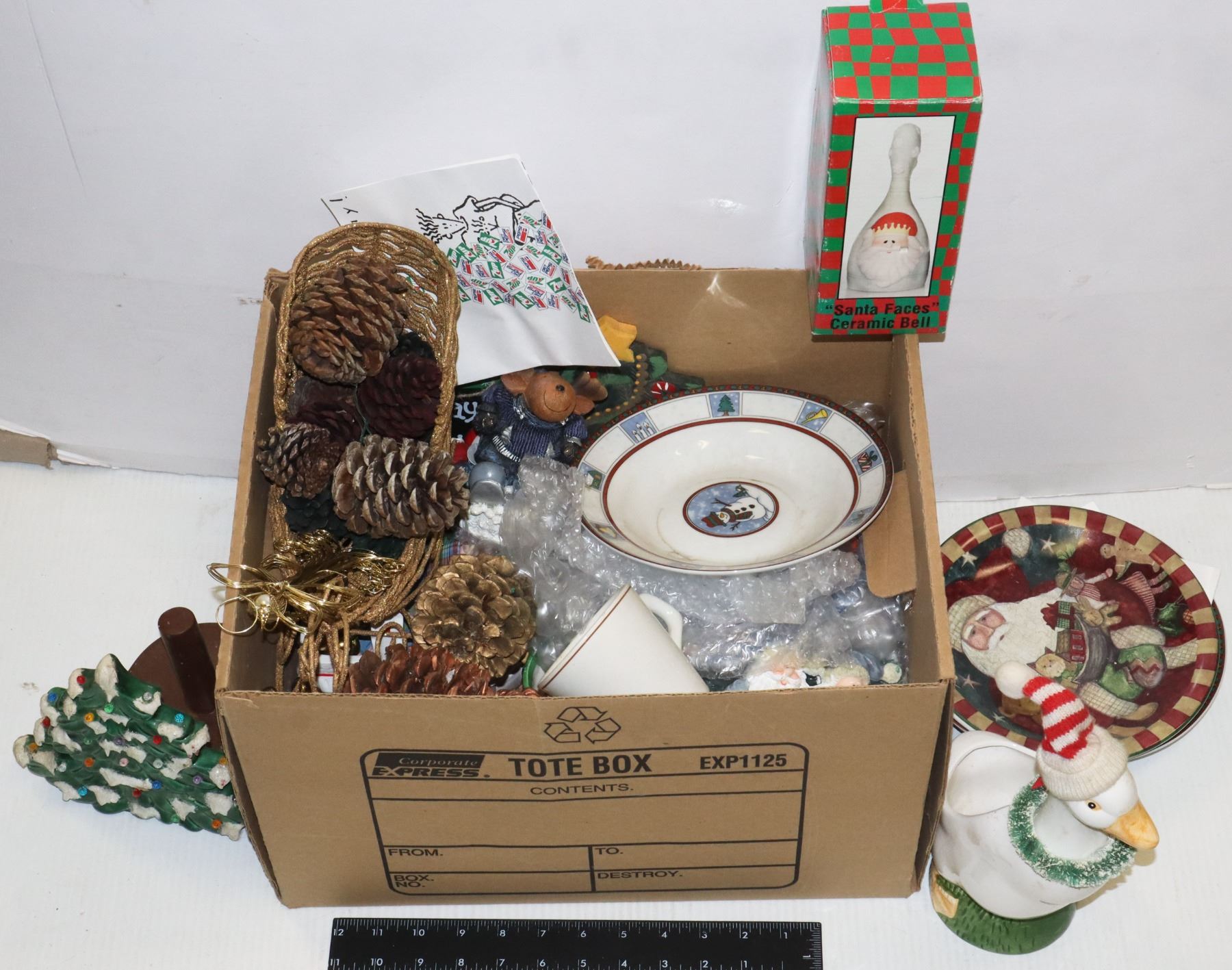 LOT OF ASSORTED CHRISTMAS DISHES, ORNAMENTS