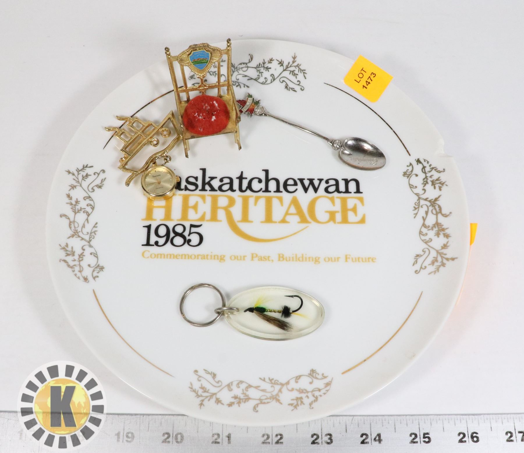 INCLUDING FISH HOOK KEYCHAIN, COLLECTOR PLATE (HAS CHIP), PIN CUSHION ROCKING CHAIR, AND MORE***ITEM(S) LOCATED IN LETHBRIDGE ALBERTA. SMALL ITEMS ONLY ARE AVAILABLE FOR FREE TRANSPORT TO EDMONTON OFFICE (READ AUCTION DETAILS FOR MORE INFORMATION)