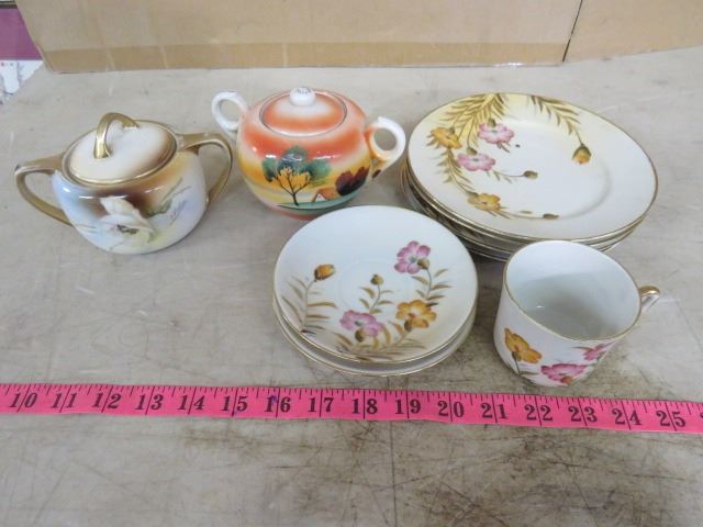 LOT OF ASSORTED DISHES (HANDPAINTED PRUSSIA, HANDPAINTED NIPPON, MADE IN JAPAN)
