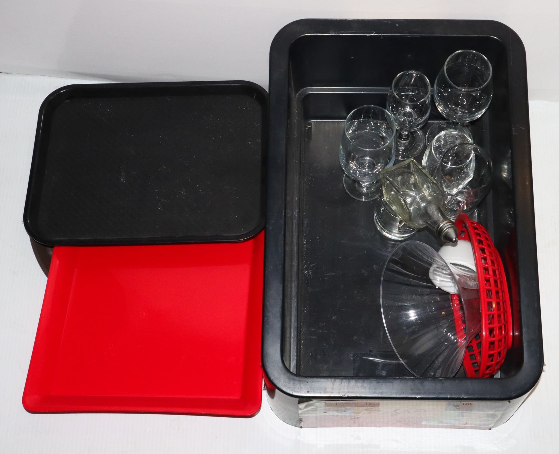 LOT OF ASSORTED DISHWARE AND SERVING TRAYS