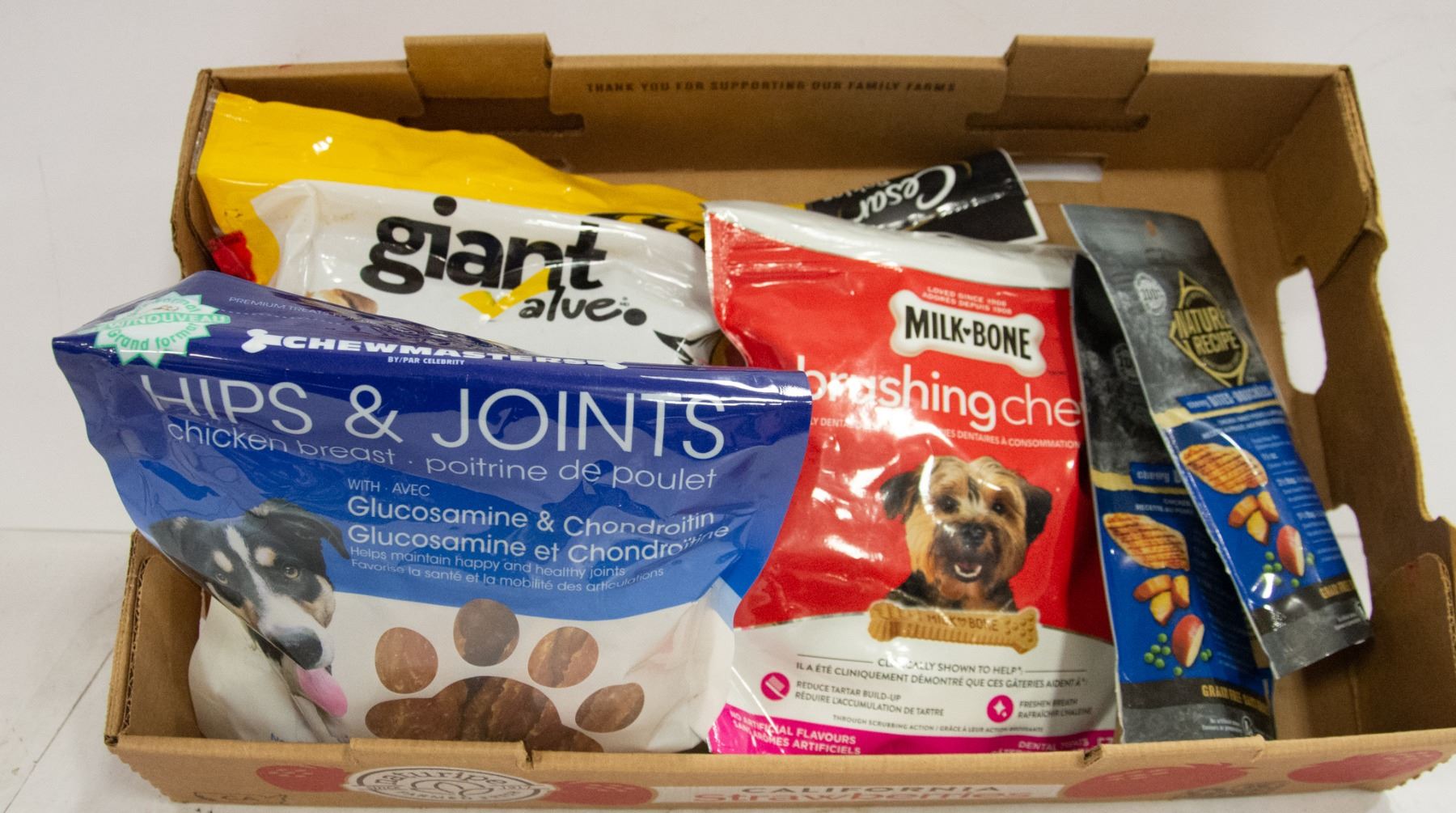 LOT OF ASSORTED DOG FOOD, TREATS & DENTAL STICKS