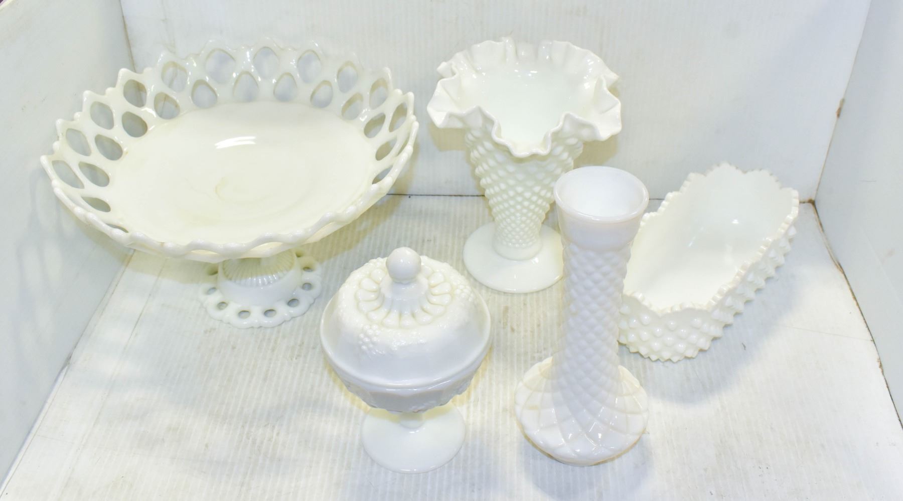 LOT OF ASSORTED ESTATE VINTAGE MILK GLASS
