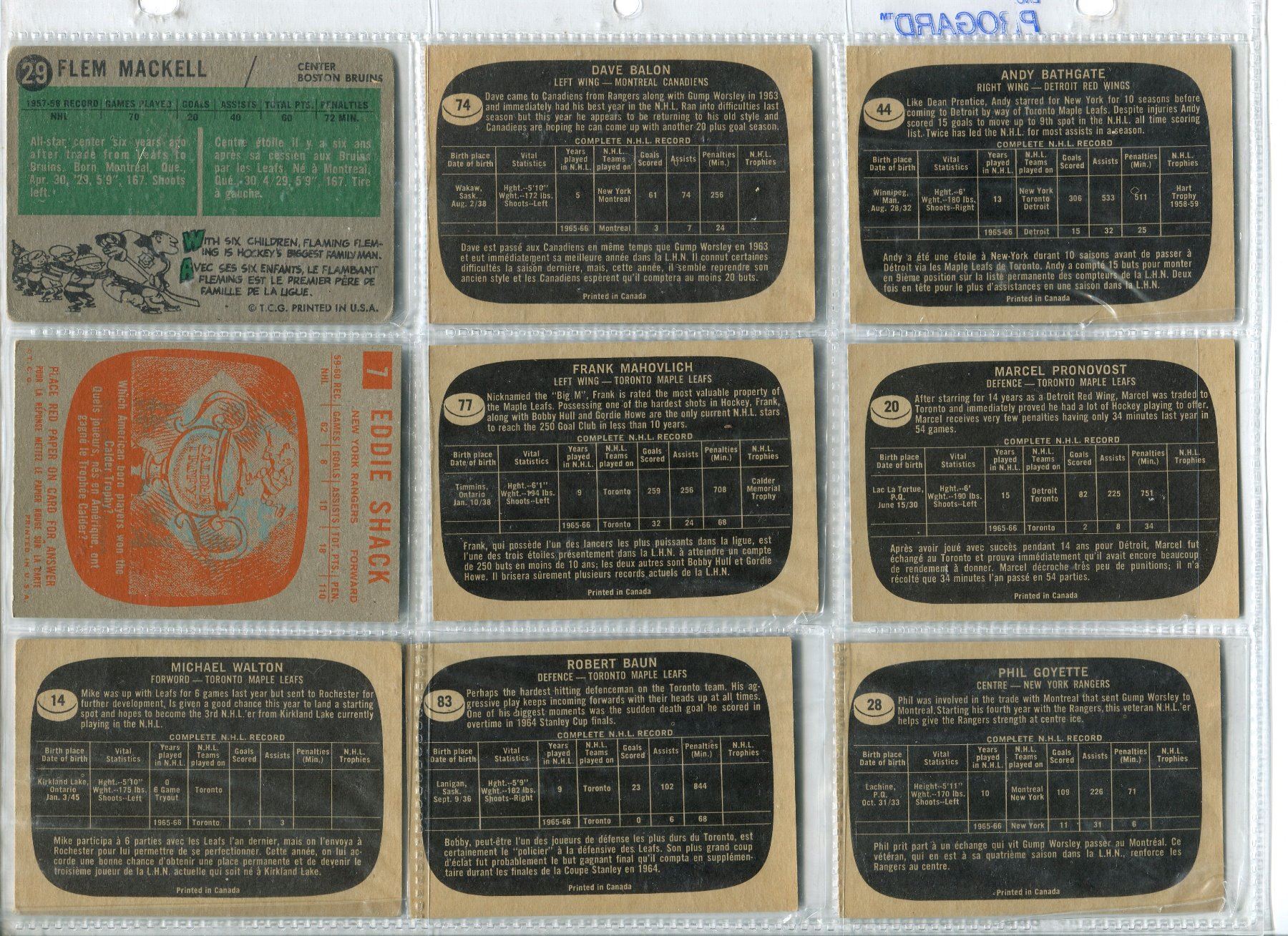 LOT OF ASSORTED HOCKEY CARDS (FRANK MAHOVOLICH, EDDY SHACK, FLEM MACKELL, AND MANY MORE! ) *SOME VER