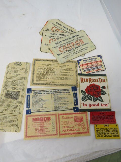 LOT OF ASSORTED HOUSEHOLD COUPONS (RED ROSE, NABOB, ROYAL CROWN) *VINTAGE*