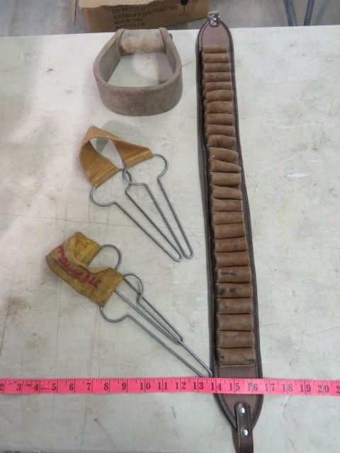 LOT OF ASSORTED ITEMS (AMMUNITION BELT, STIRUP, ETC.)