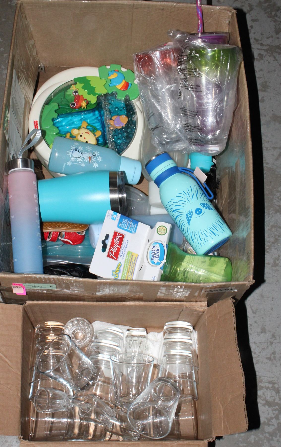 TUPPERWARE WATER BOTTLES, DRINKING GLASSES, BABY  SHOES AND FISHER PRICE MOBILE AND MORE