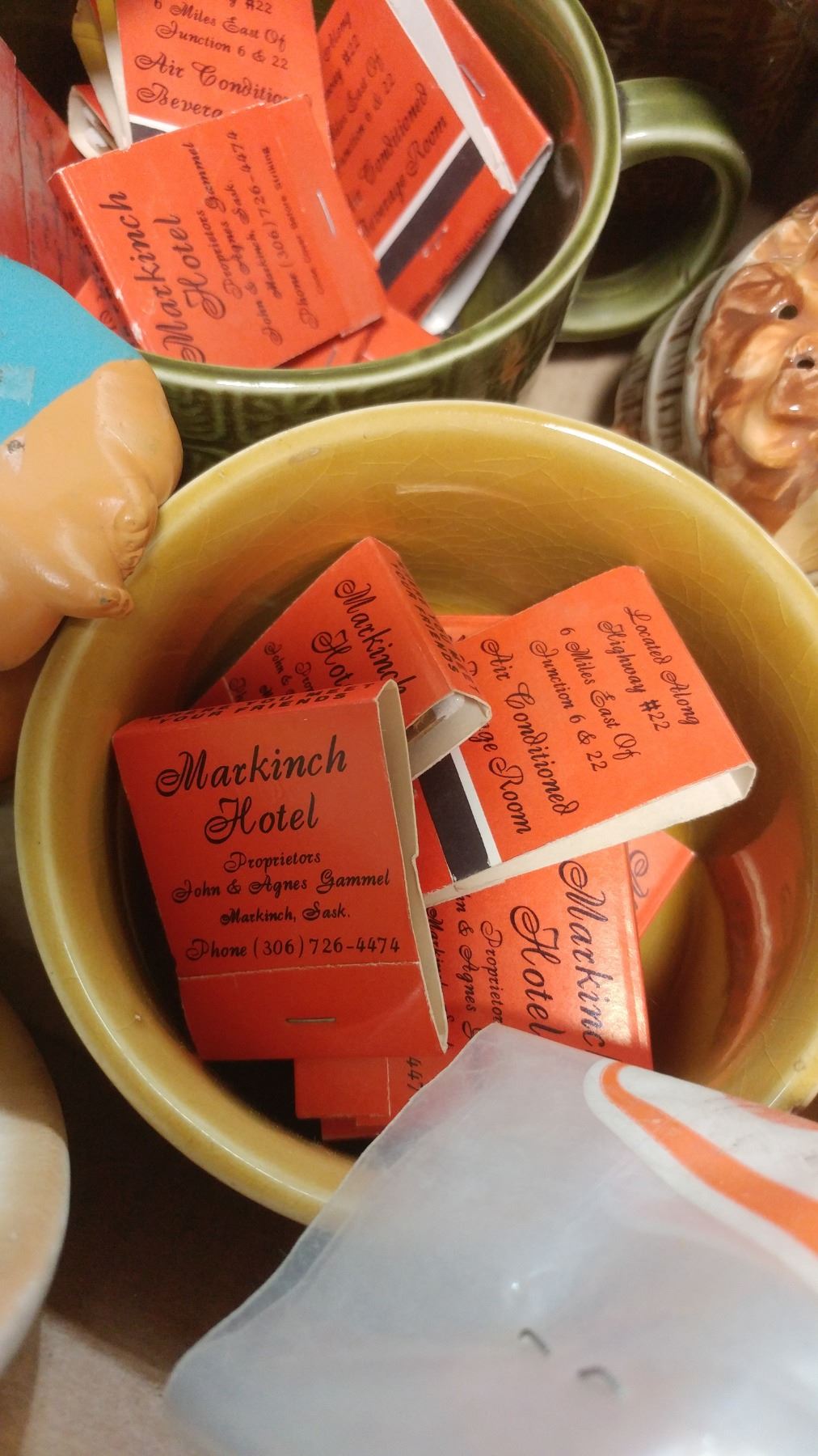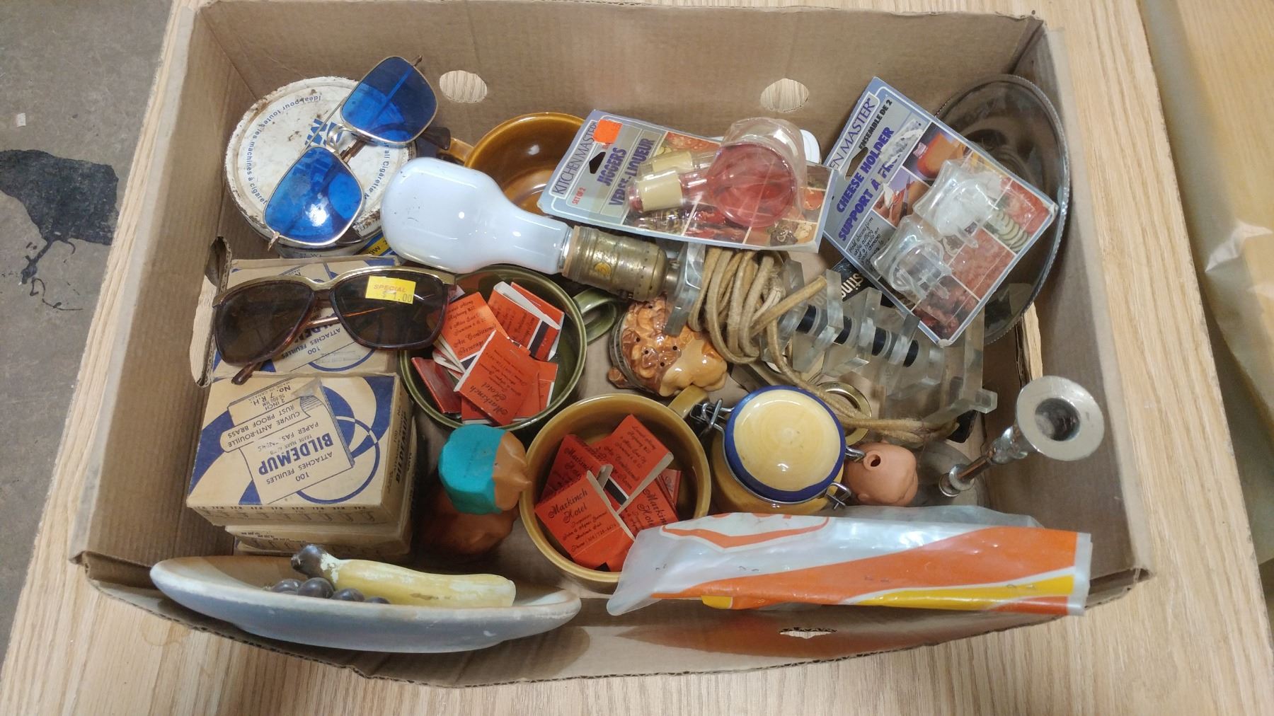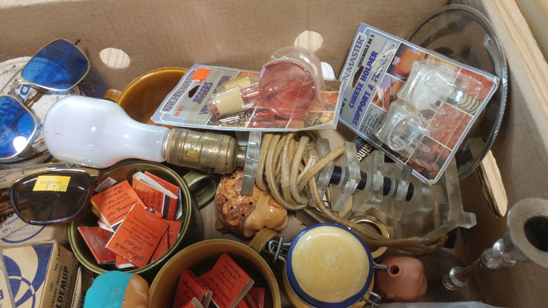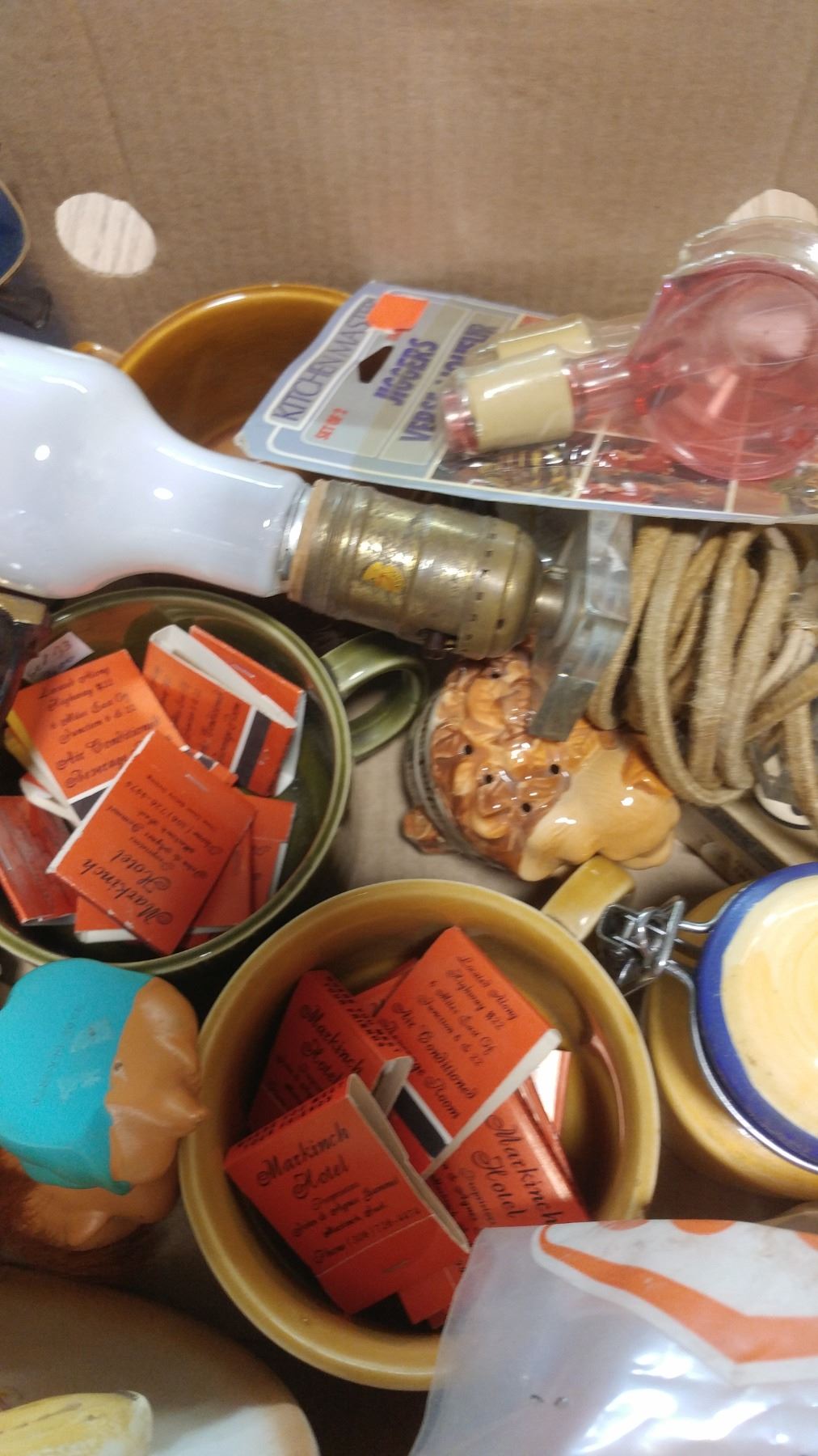 LOT OF ASSORTED ITEMS (LAMP, MARKINCH HOTEL MATCHES, MUGS, ETC.)