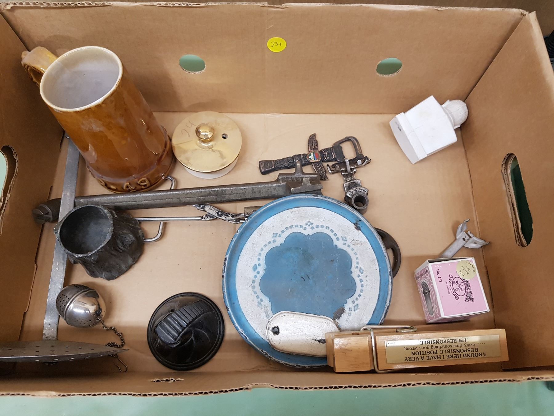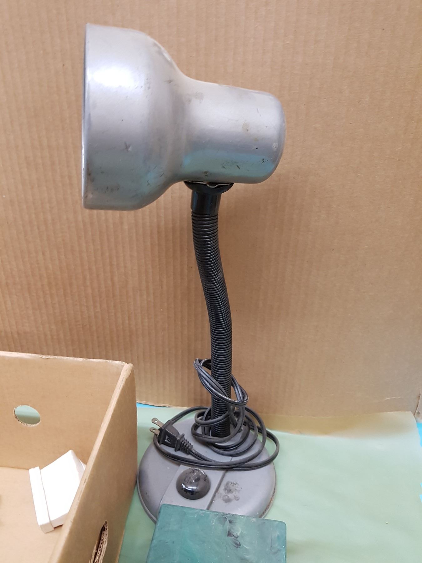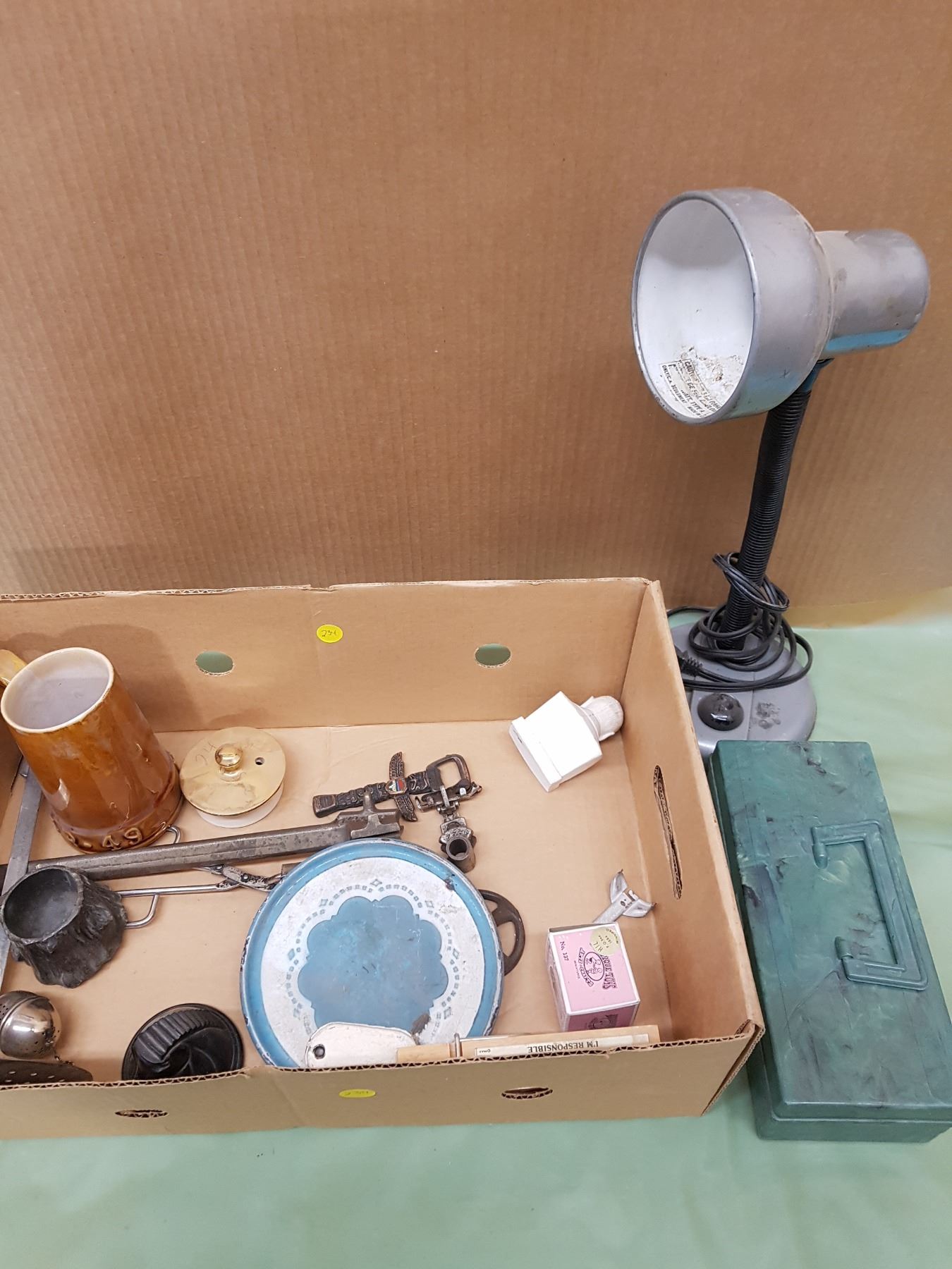 LOT OF ASSORTED ITEMS (LAMP, TACKLE BOX, ETC.)