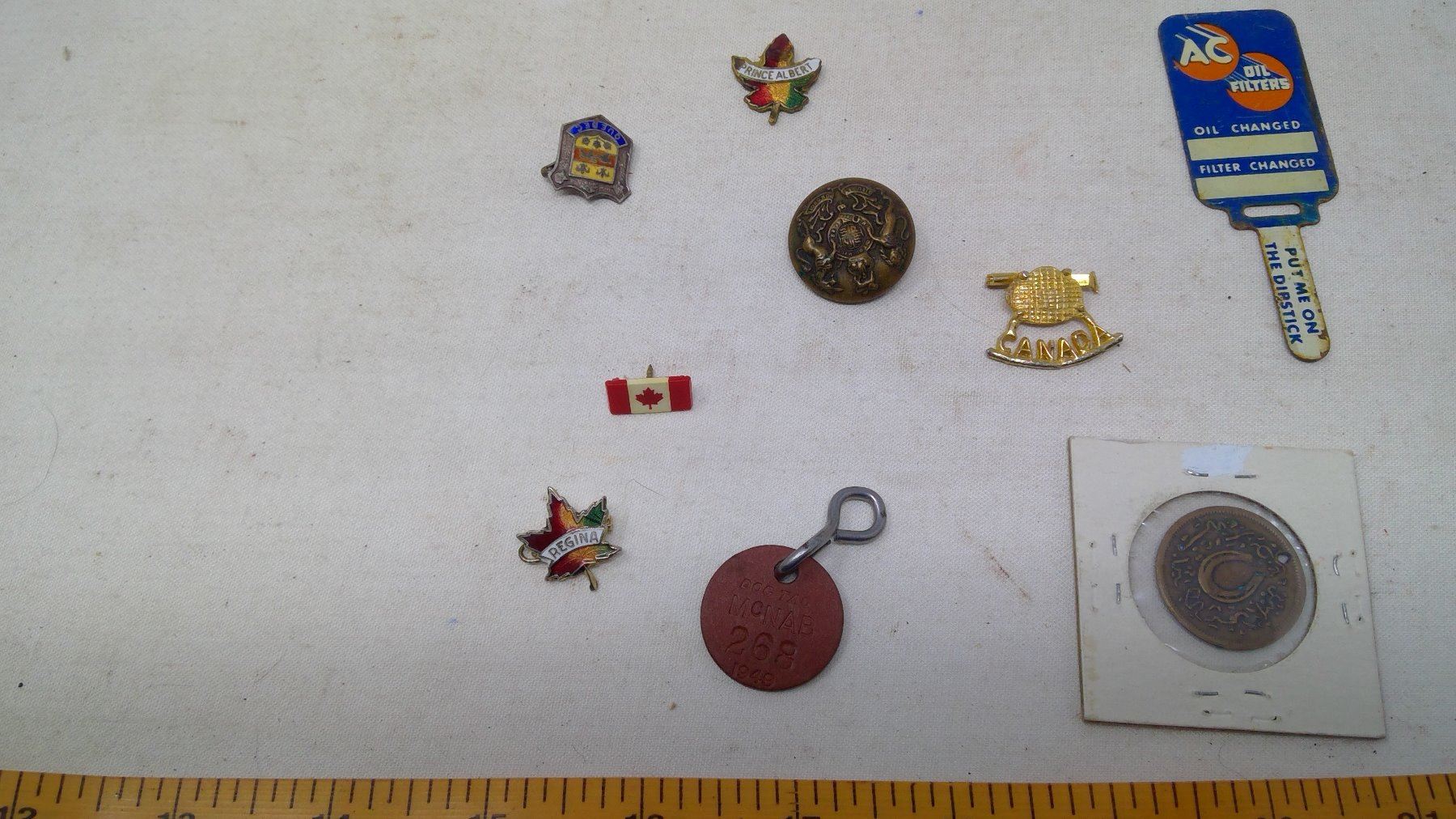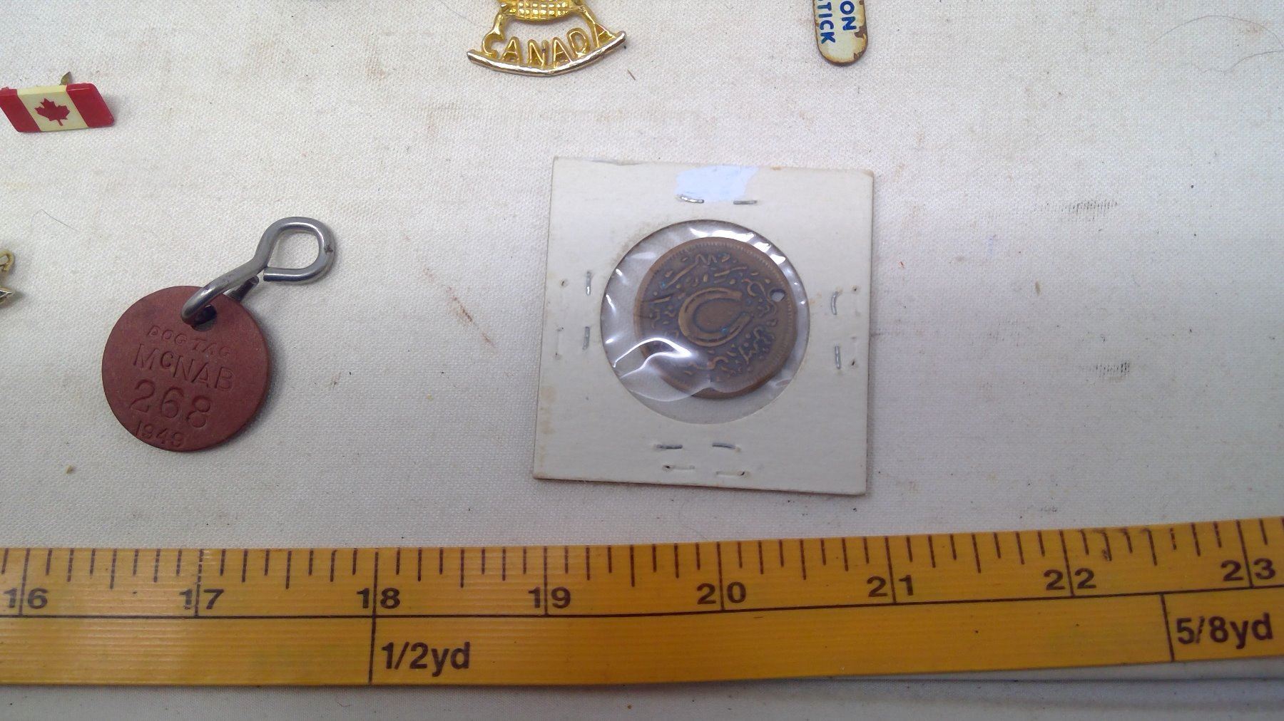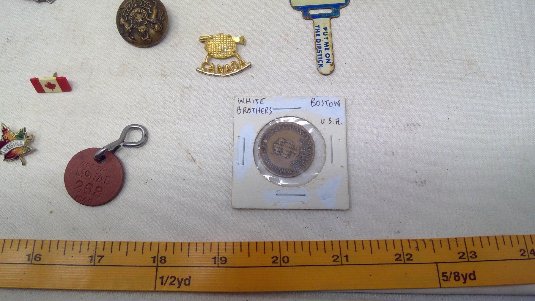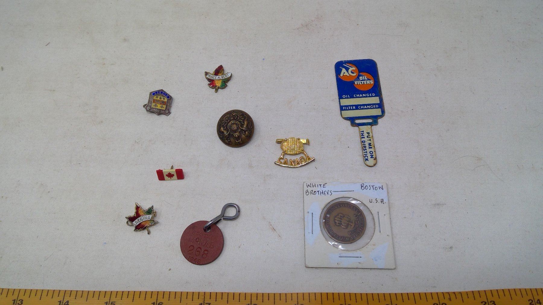 LOT OF ASSORTED ITEMS - PINS, COIN, ETC.