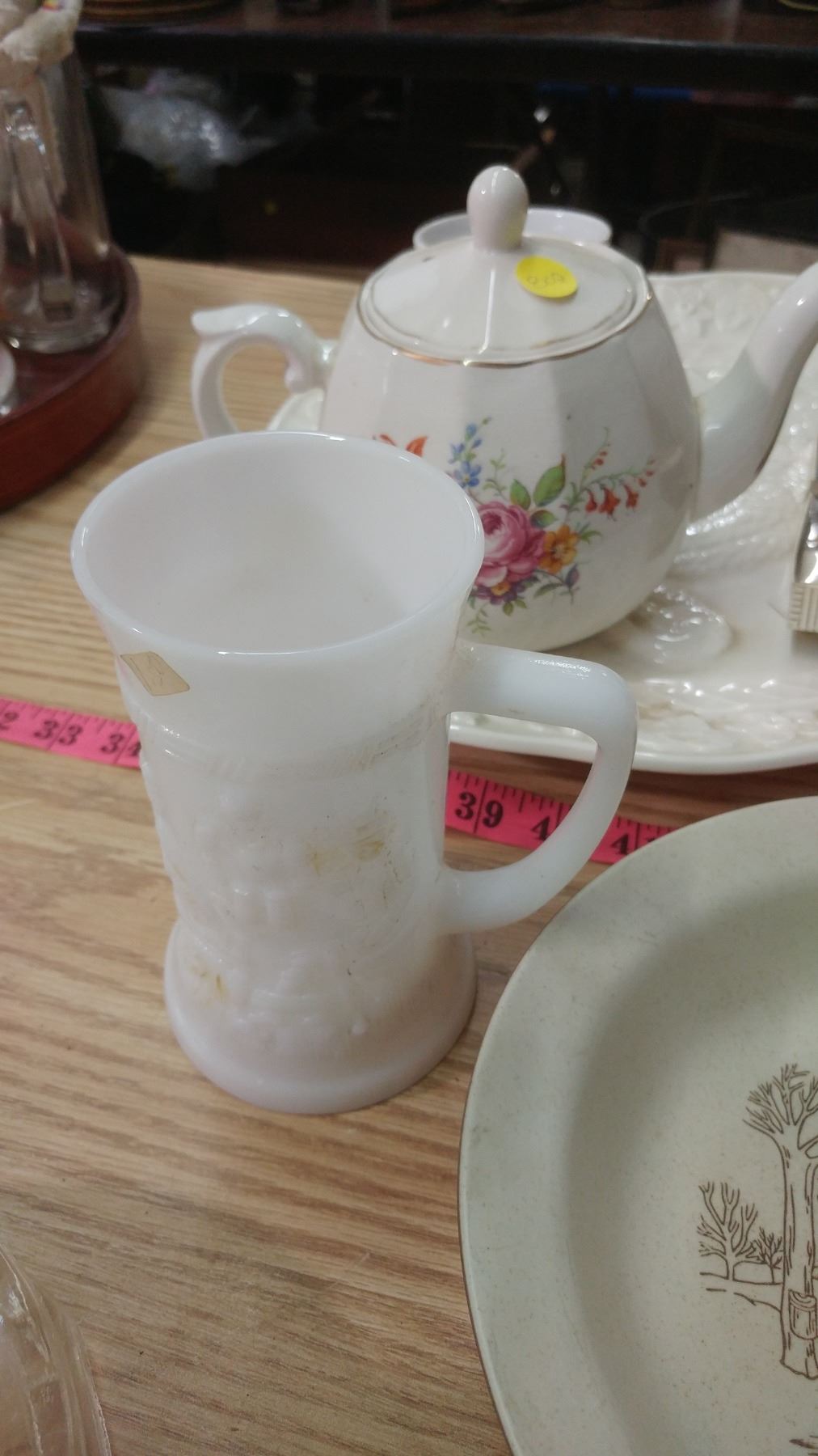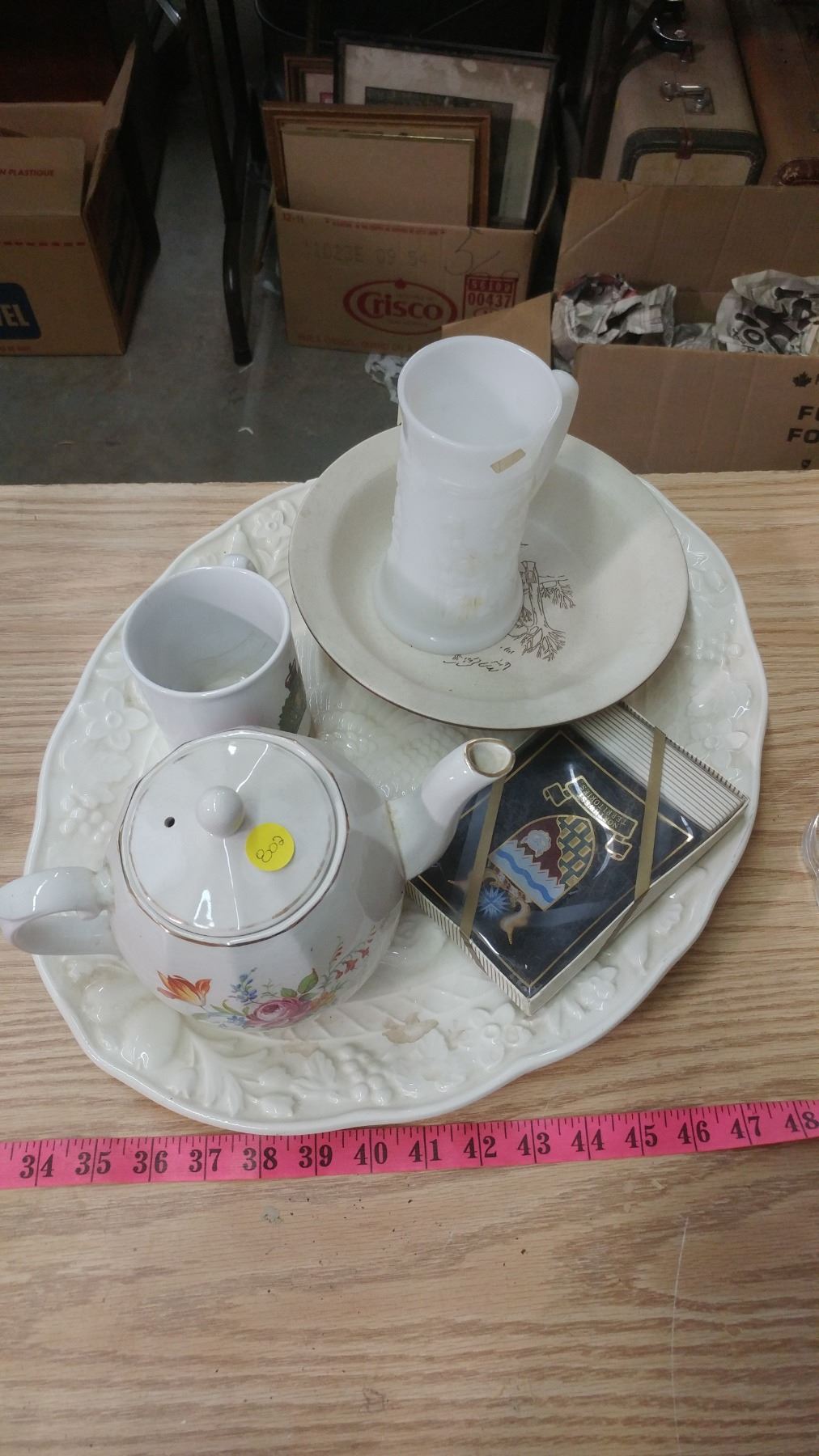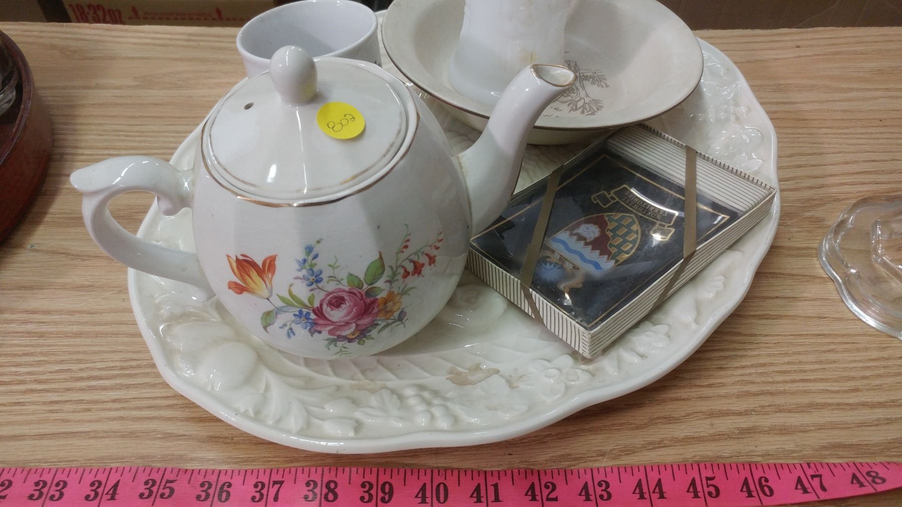 LOT OF ASSORTED ITEMS-TURKEY PLATTER, TEAPOT, CUPS, ETC.