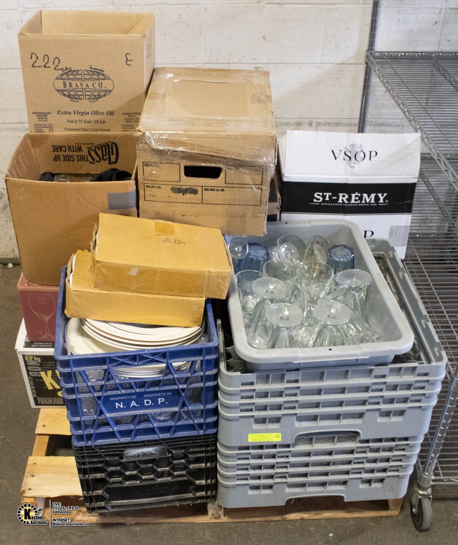 LOT OF ASSORTED KEG DISHES, GLASSES, SHOT GLASSES