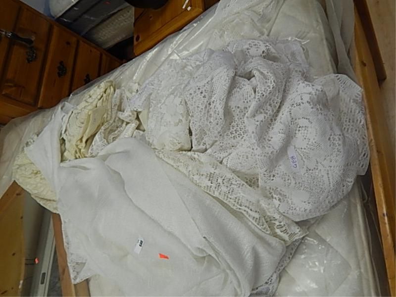 LOT OF ASSORTED LACE CURTAINS, SHEARS ETC
