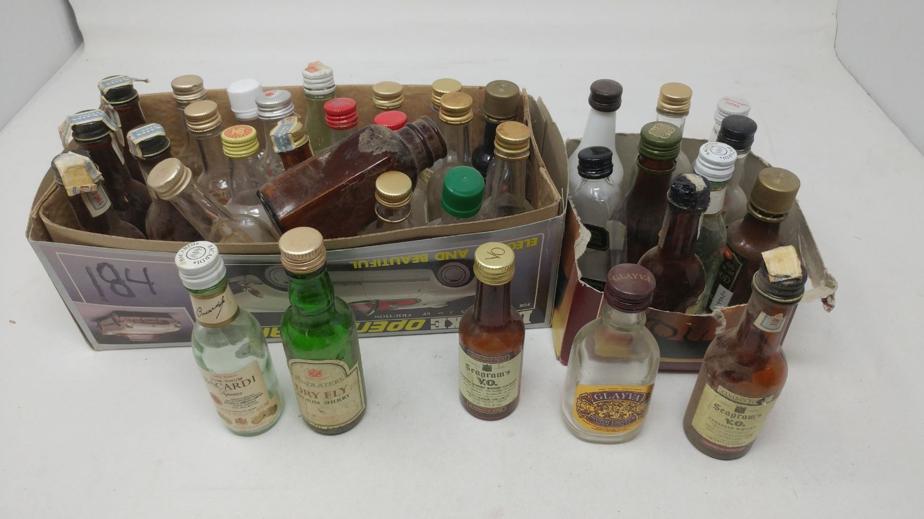 LOT OF ASSORTED MINI BOTTLES (SEAGRAM'S WHISKEY, BACARDI RUM, ETC.)