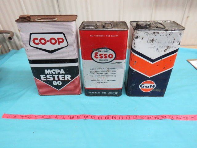 LOT OF ASSORTED OIL TINS (GULF, ESSO, COOP)