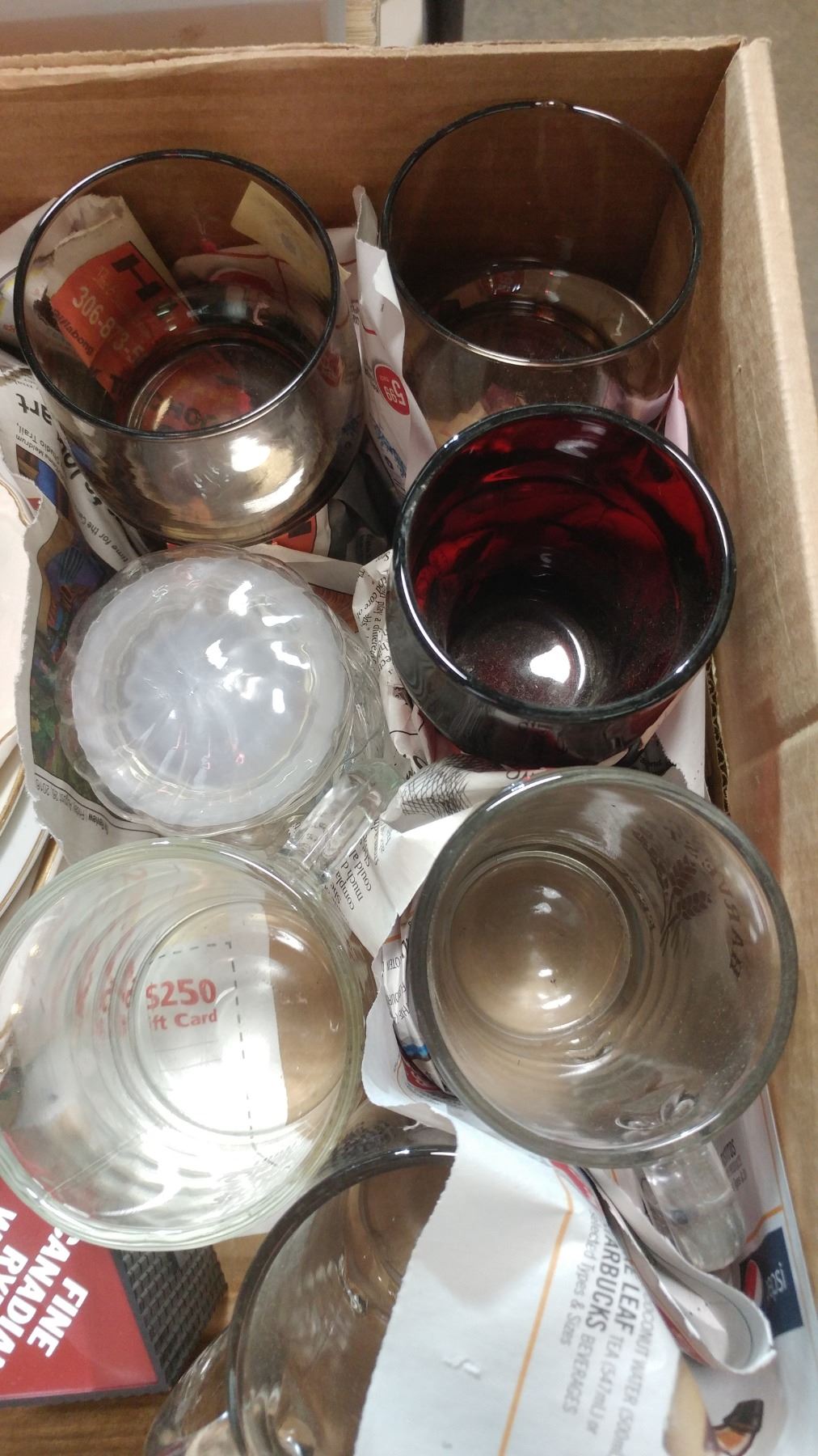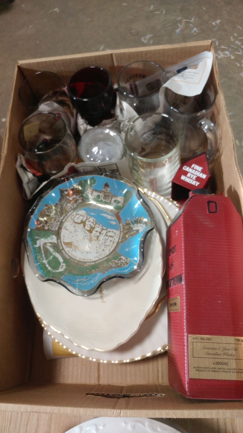 LOT OF ASSORTED PLATES, GLASSES, ETC.
