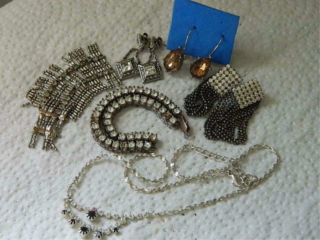 LOT OF ASSORTED RHINESTONE JEWELRY - SOME AS-IS