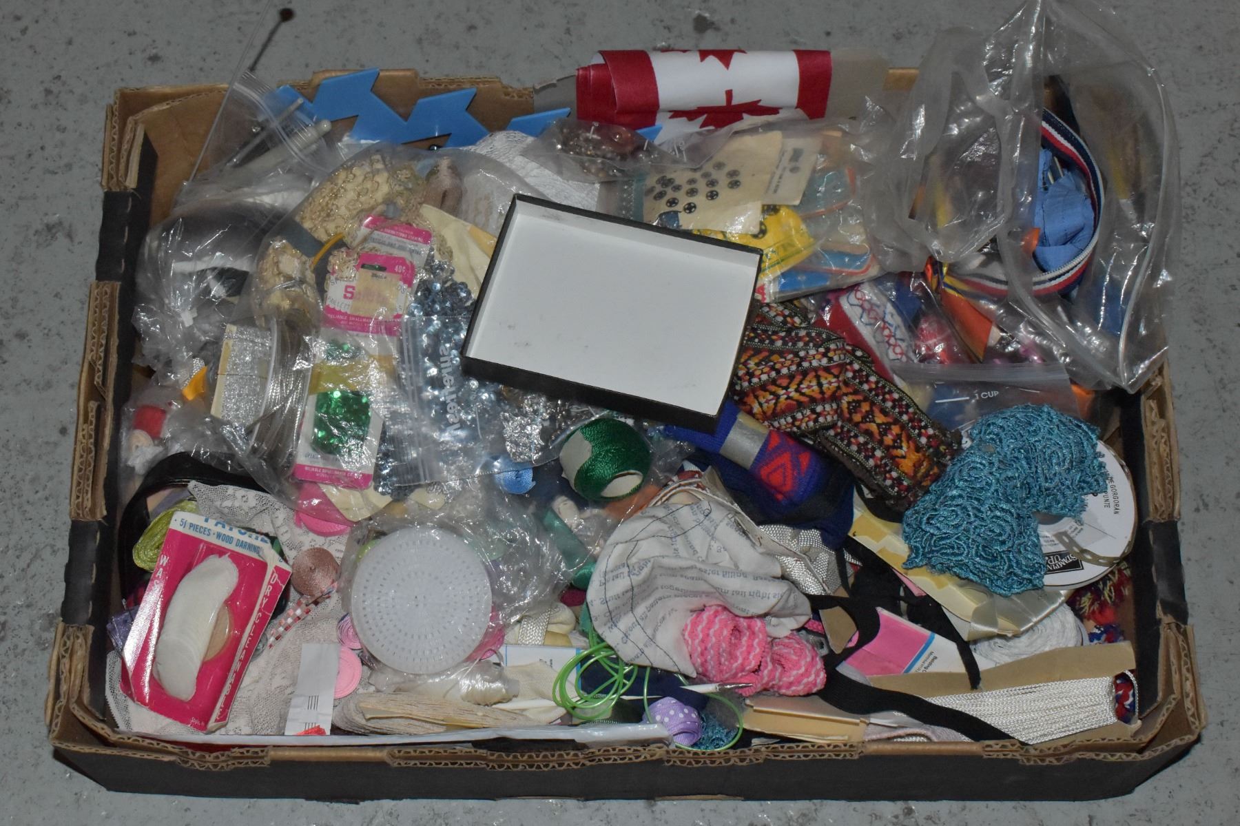 LOT OF ASSORTED RIBBONS AND CRAFTING PIECES