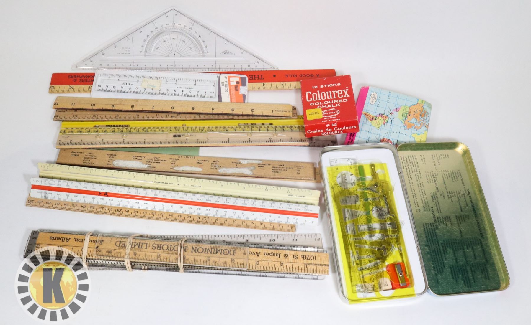 CHALK MATHEMATICAL INSTRUMENTS ASSORTED RULERS***ITEM(S) LOCATED IN LETHBRIDGE ALBERTA. SMALL ITEMS ONLY ARE AVAILABLE FOR FREE TRANSPORT TO EDMONTON OFFICE (READ AUCTION DETAILS FOR MORE INFORMATION)