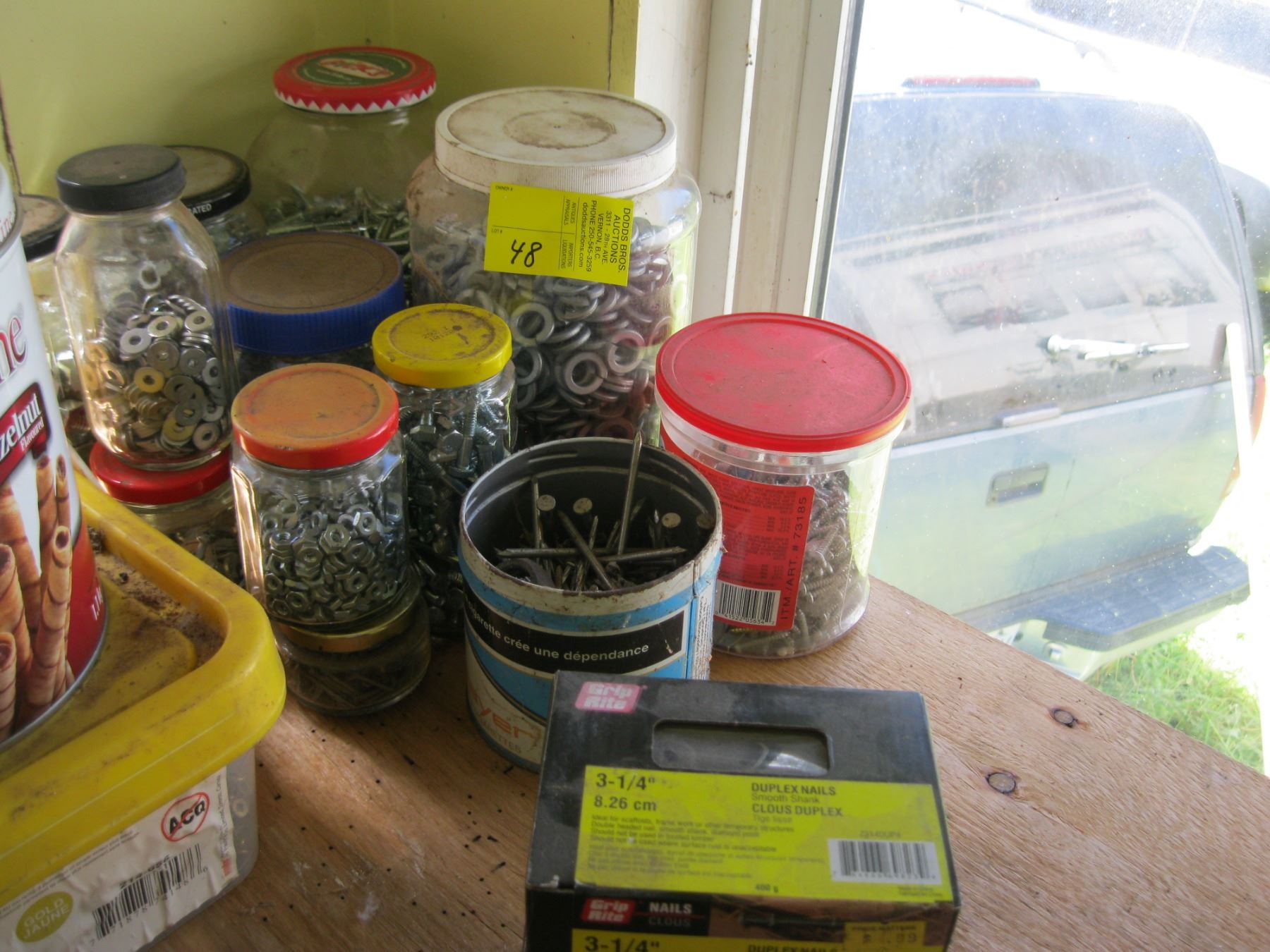 LOT OF ASSORTED SCREWS, WASHERS, NUTS & BOLTS, ETC.