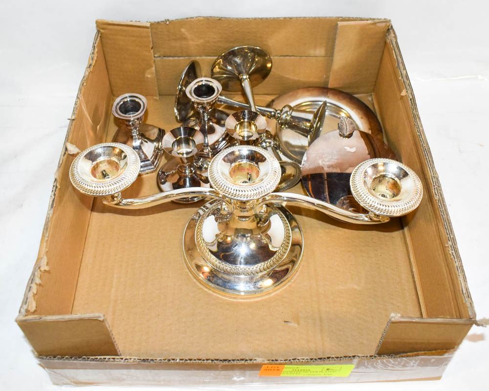 LOT OF ASSORTED SILVER PLATED CANDLE HOLDERS