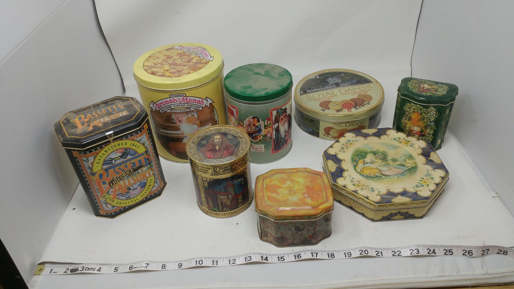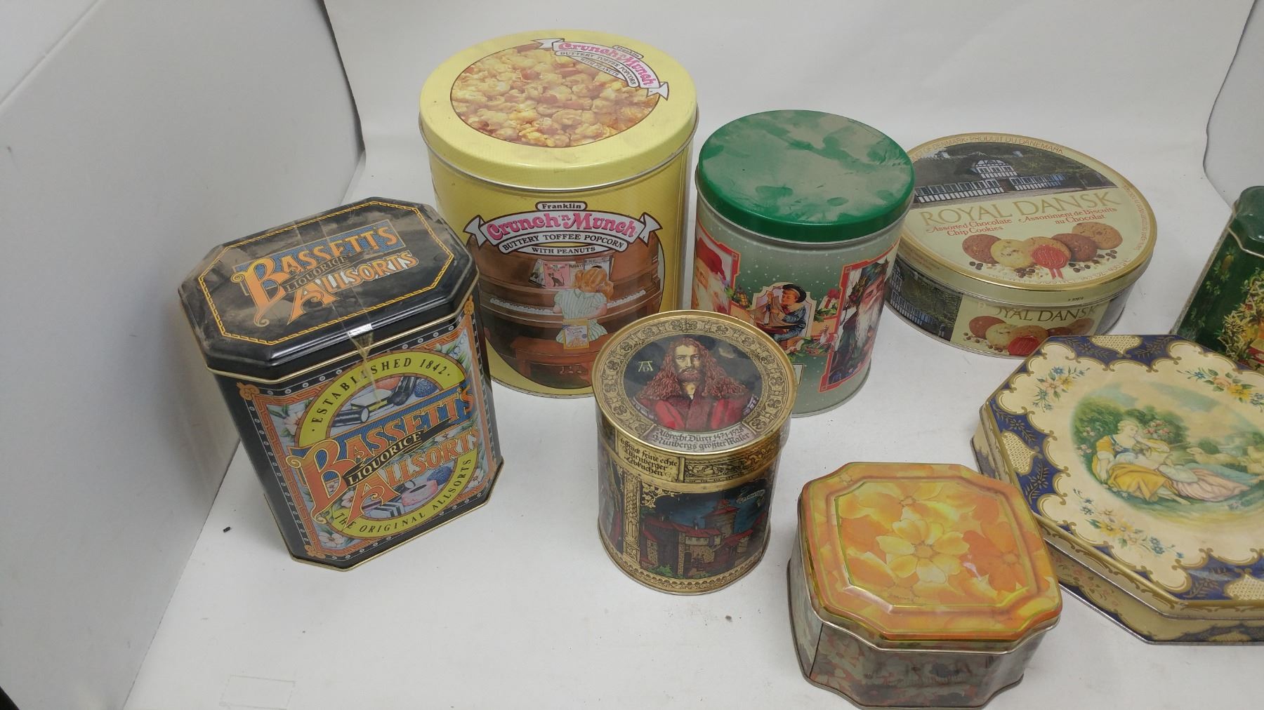 LOT OF ASSORTED TINS (ALLSORTS, CRUNCH N' MUNCH, ROYAL DANSK, ETC.)