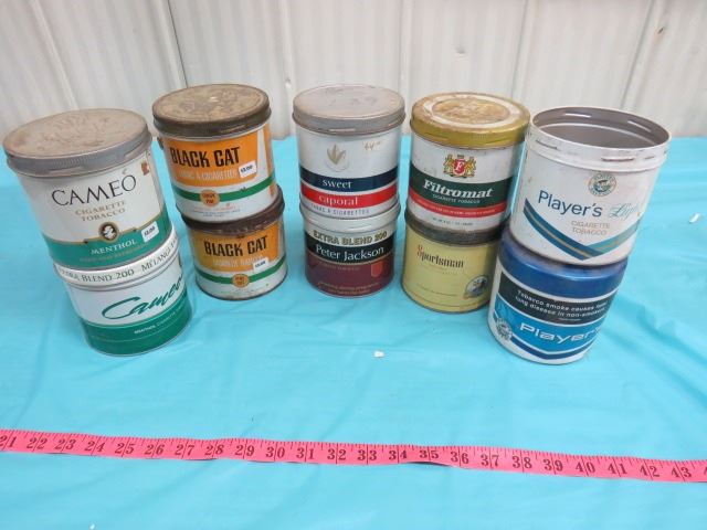 LOT OF ASSORTED TINS (PLAYER'S LIGHT, CAMEO, BLACK CAT, ETC.)