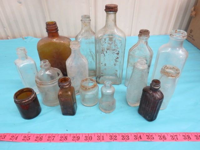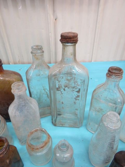 LOT OF ASSORTED VINTAGE MEDICINE AND KITCHEN BOTTLES (J.R. WATKINS, ETC.)