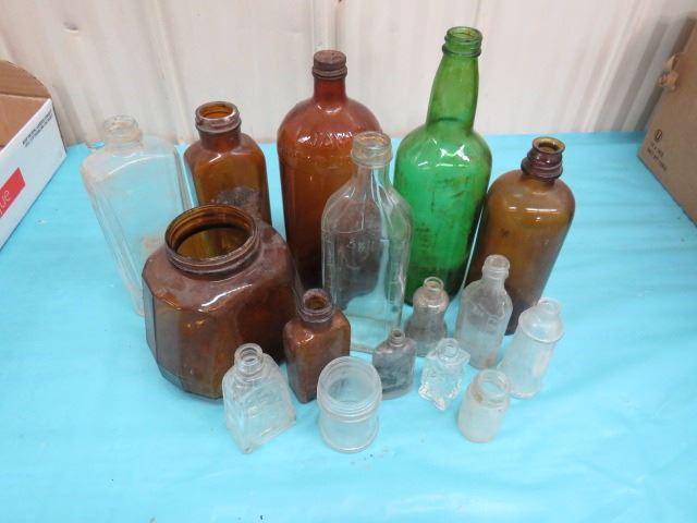 LOT OF ASSORTED VINTAGE MEDICINE AND KITCHEN BOTTLES (JAVEX, ETC.)