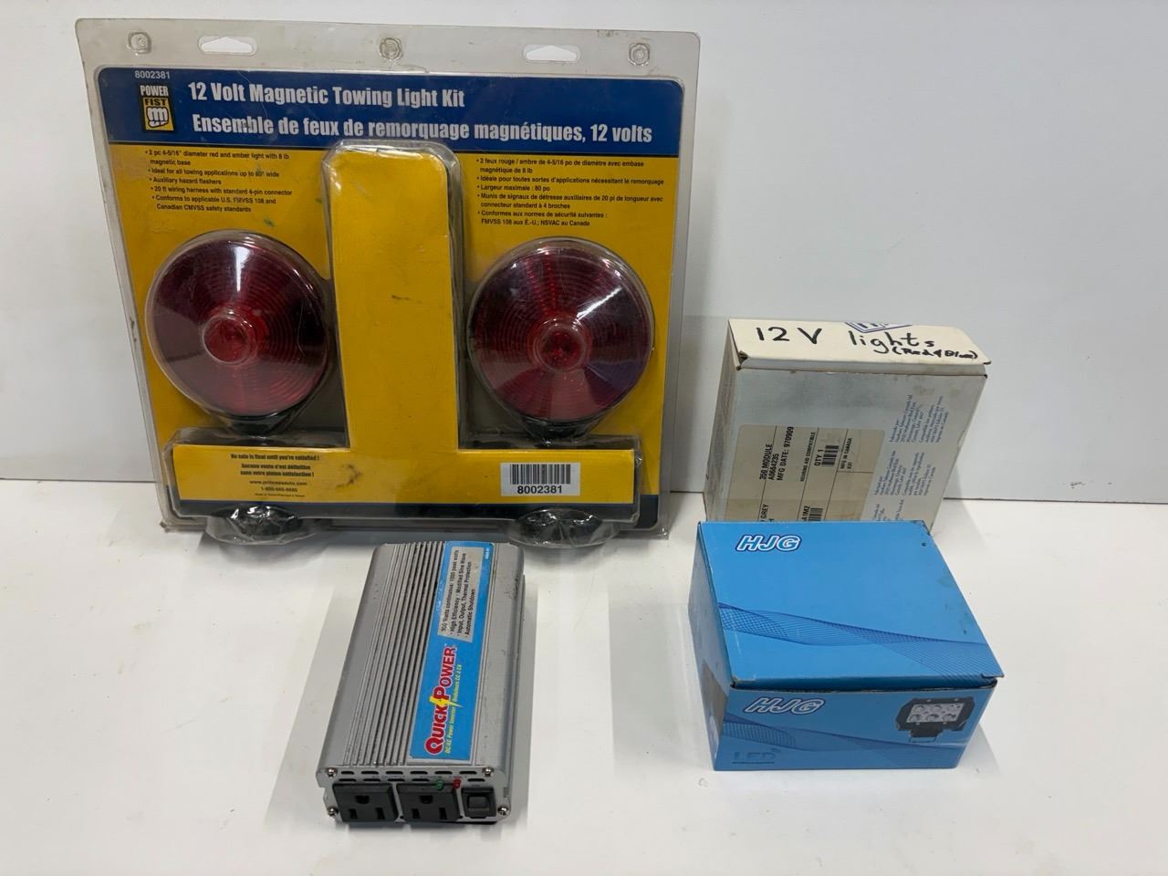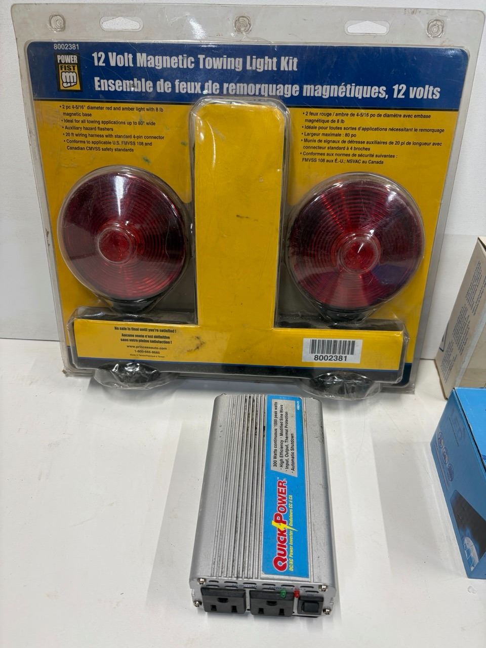 NEW UNUSED 12 V MAGNETIC TOWING LIGHT, NEW 4” ACCESSORY/WORK LIGHT WITH BRACKET, 300W POWER INVERTER, MISC BLUE/WHITE LEDs **ALL ITEMS MUST BE REMOVED BY 5PM SATURDAY, FEBRUARY 7TH 2025. ALL REMAINING ITEMS WILL BE SUBJECT TO A $6.00 PER DAY STORAGE CHARGE. ANY ITEMS REMAINING AFTER MONDAY, FEBRUARY 23RD 2025 WILL BE CONSIDERED FORFEITED. NO REFUNDS WILL BE ISSUED FOR FORFEITED ITEMS. TO SCHEDULE A PICK UP APPOINTMENT CLICK HERE