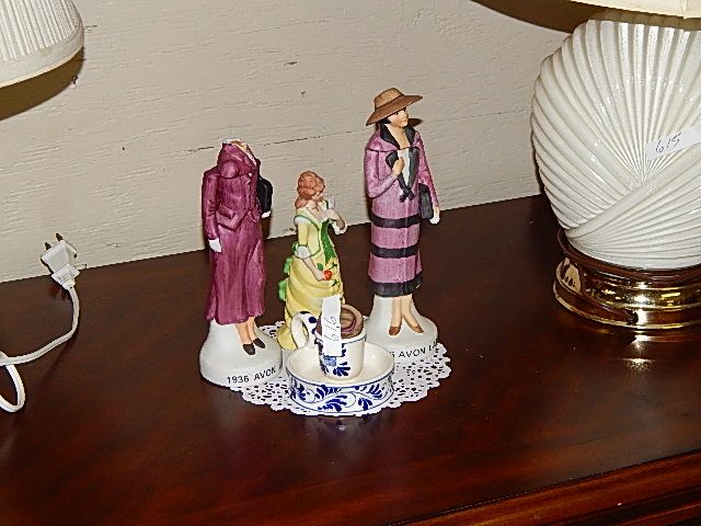 LOT OF AVON LADIES AND DELFT BLUE CANDLE HOLDER